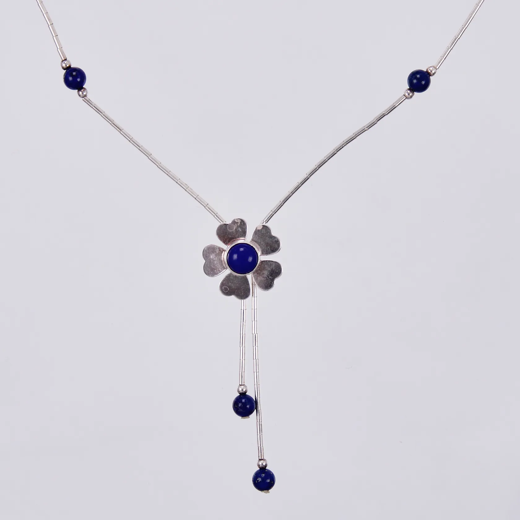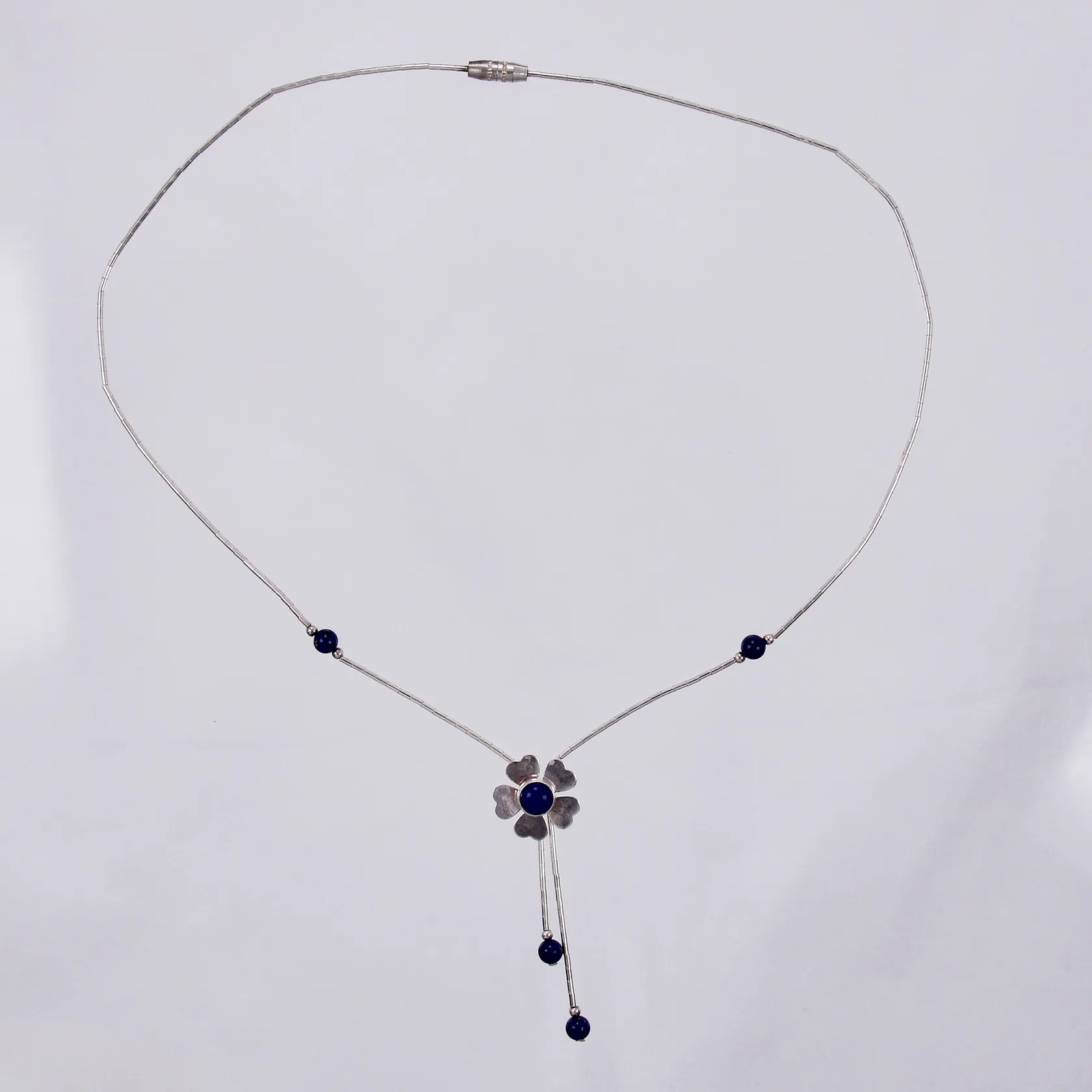 Collier Blomma med blåa stenar, längd: ca 41cm, bredd: ca 1-15mm, 925/1000, silver Vikt: 3,9 g.