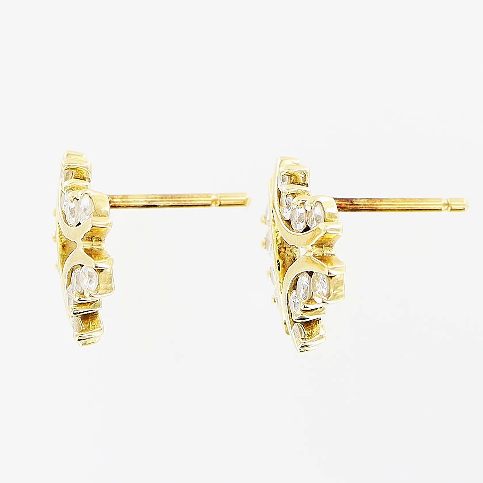 Ett par örhängen, vita stenar, 11x11mm, stoppar saknas, 18K Vikt: 2,5 g.