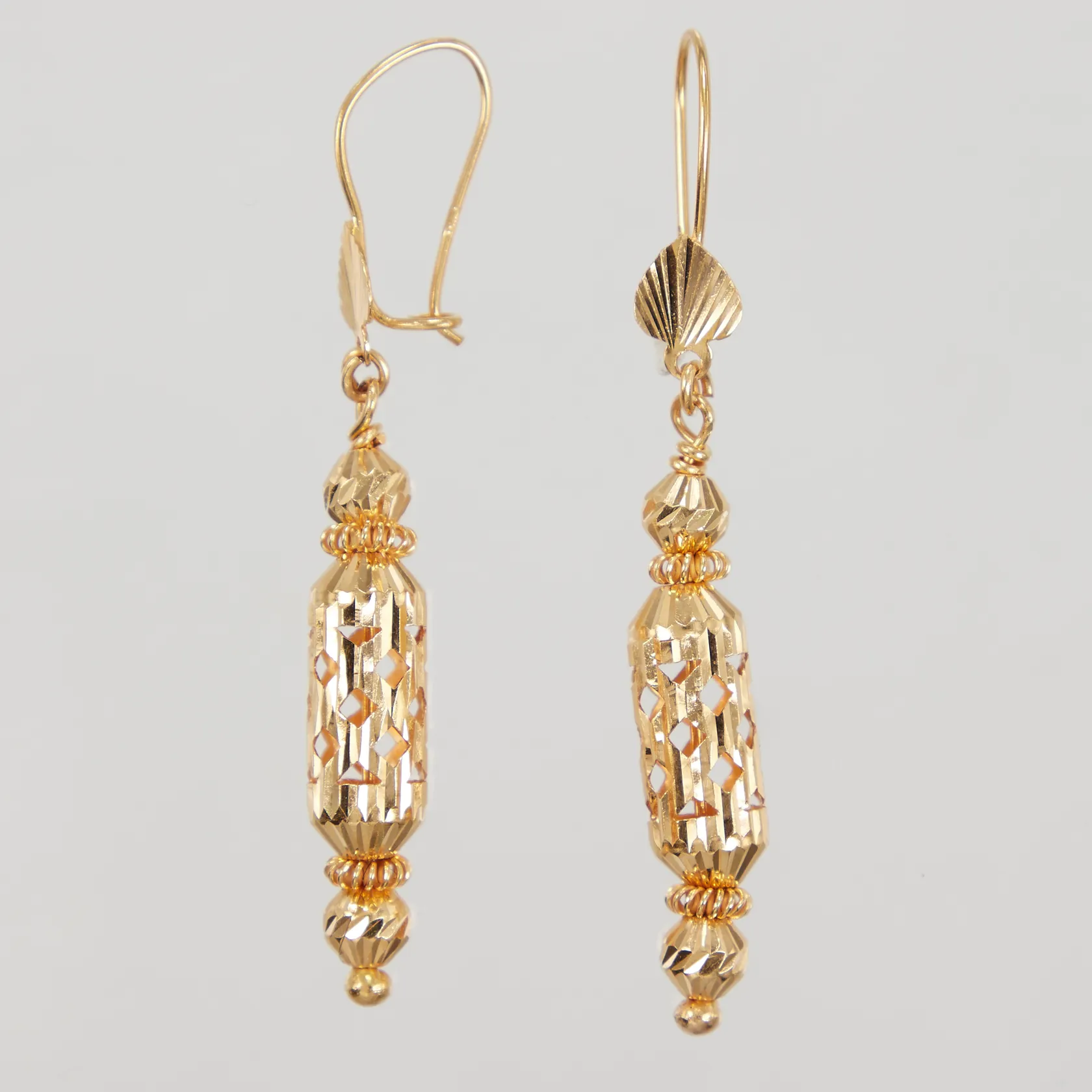 Ett par örhängen, längd 60mm, ojämnheter, 21K Vikt: 7,9 g.