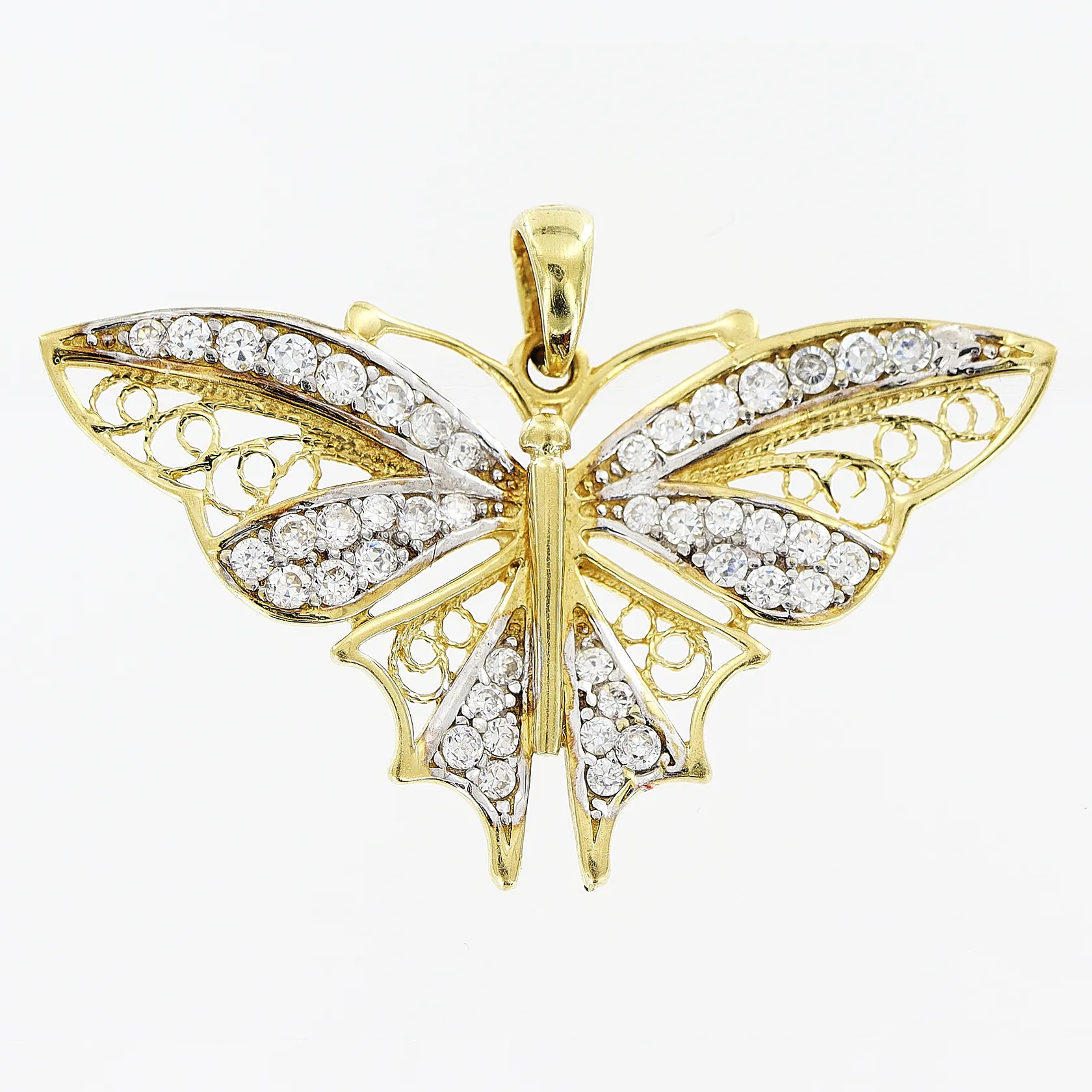 Hänge fjäril, vita stenar, 25x35mm, 14K Vikt: 3,5 g.