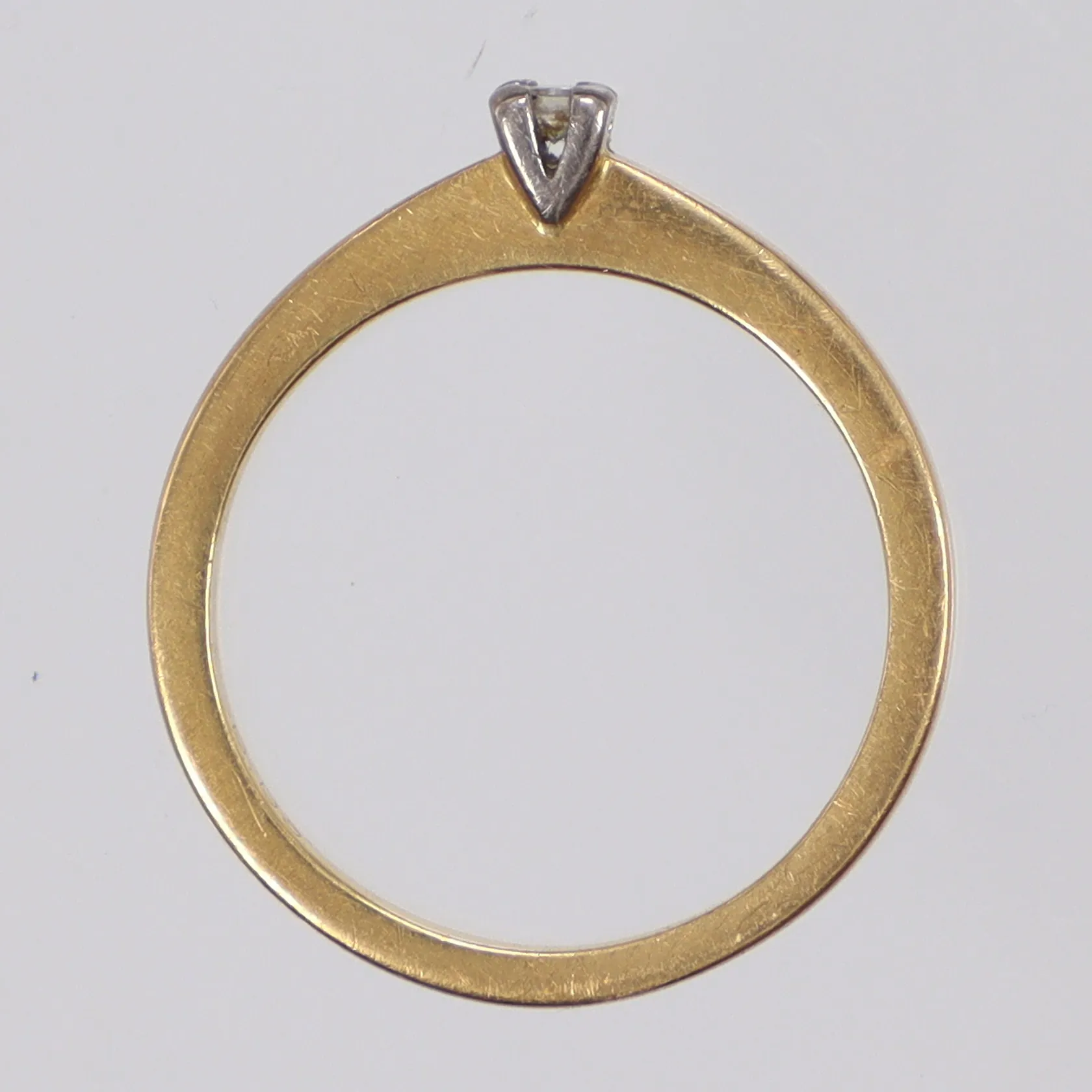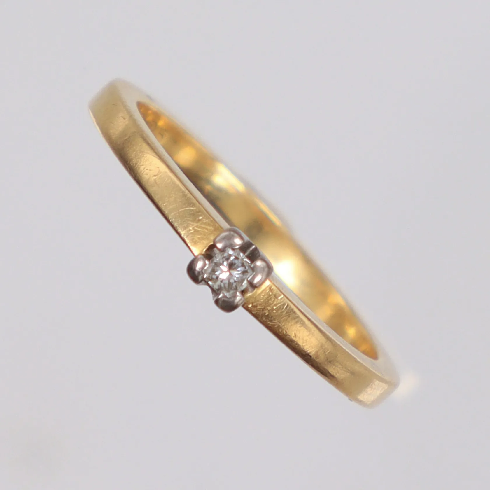Ring med diamant 1x0,05ct, stl 17½, bredd 2mm, repor, 18K Vikt: 3,6 g.