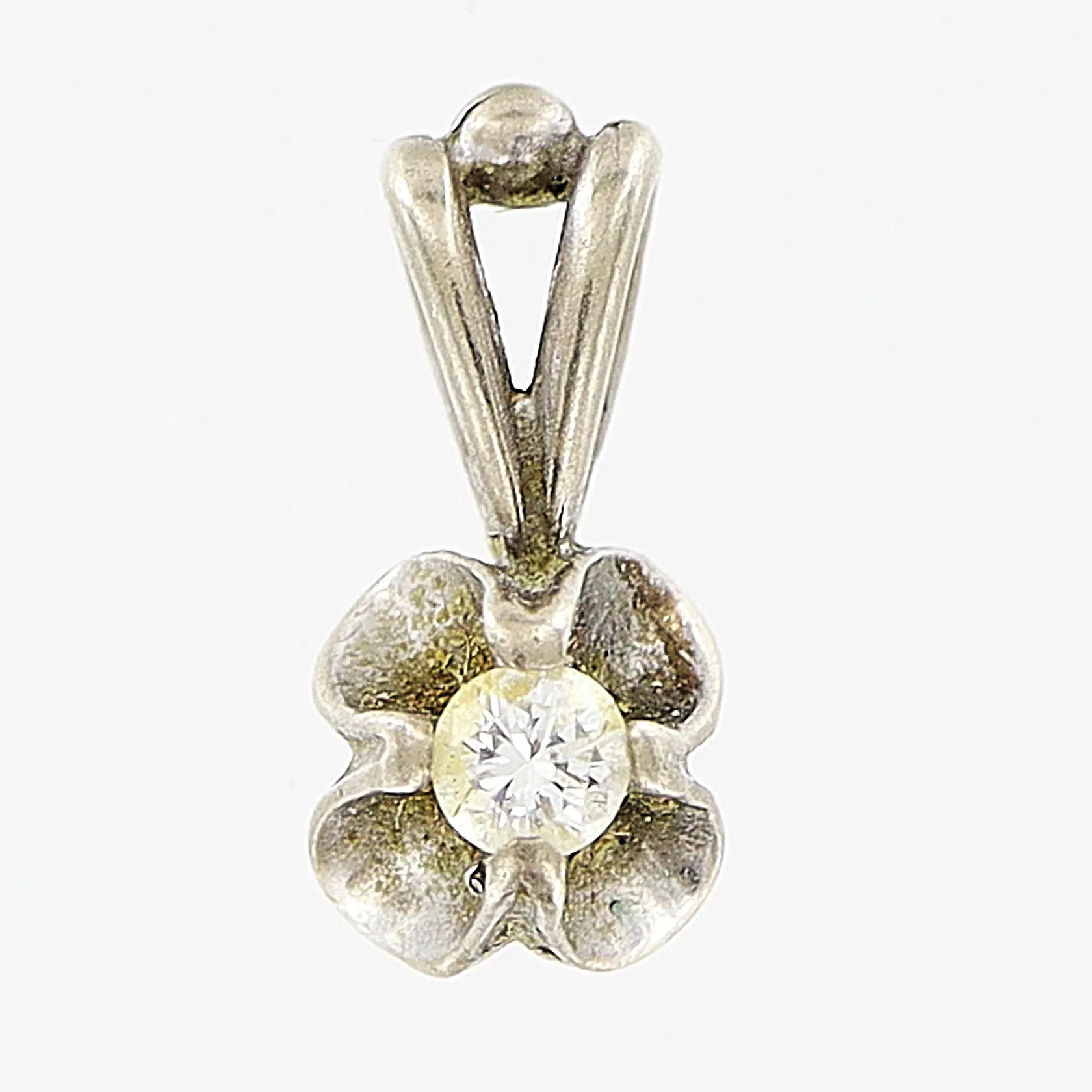 Hänge, diamant ca 0,02ct, 9mm, bredd 2,5-4mm, slitage på en klo, vitguld, 18K Vikt: 0,4 g.