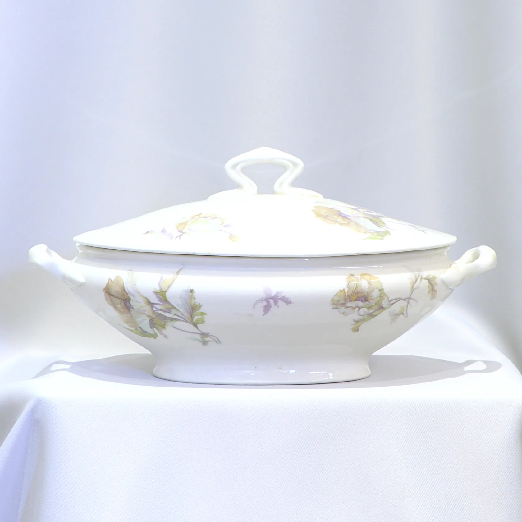Terrin med lock, Rörstrand, höjd 18cm, längd 37cm, smärre slitage, sekelskiftet 1900. Specialfrakt, kontakta pantbankskontoret för mer information..