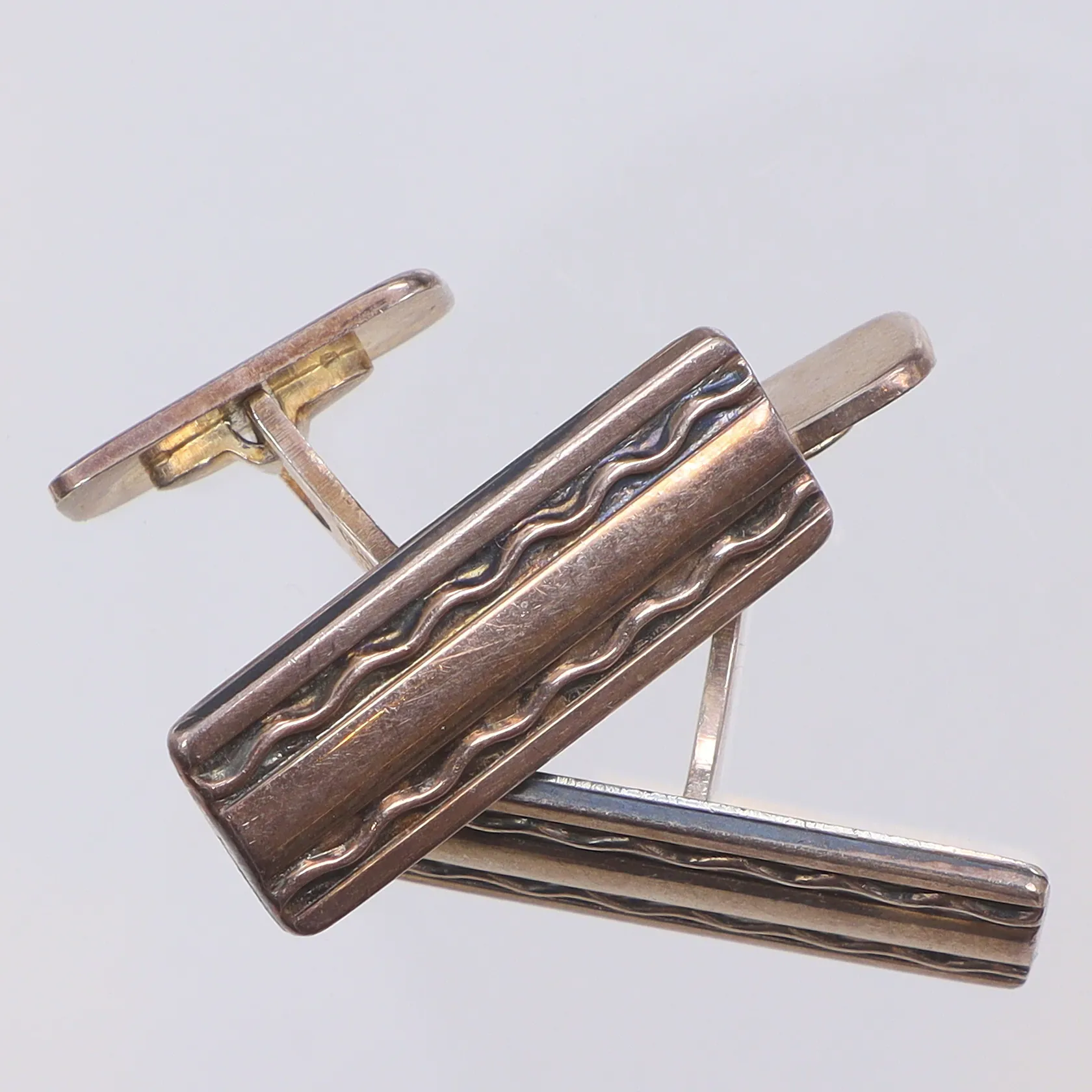 Ett par Manchettknappar 25x10mm, mönstrade, K&EC (Ceson) Göteborg 1971 silver 830/1000 Vikt: 12 g.