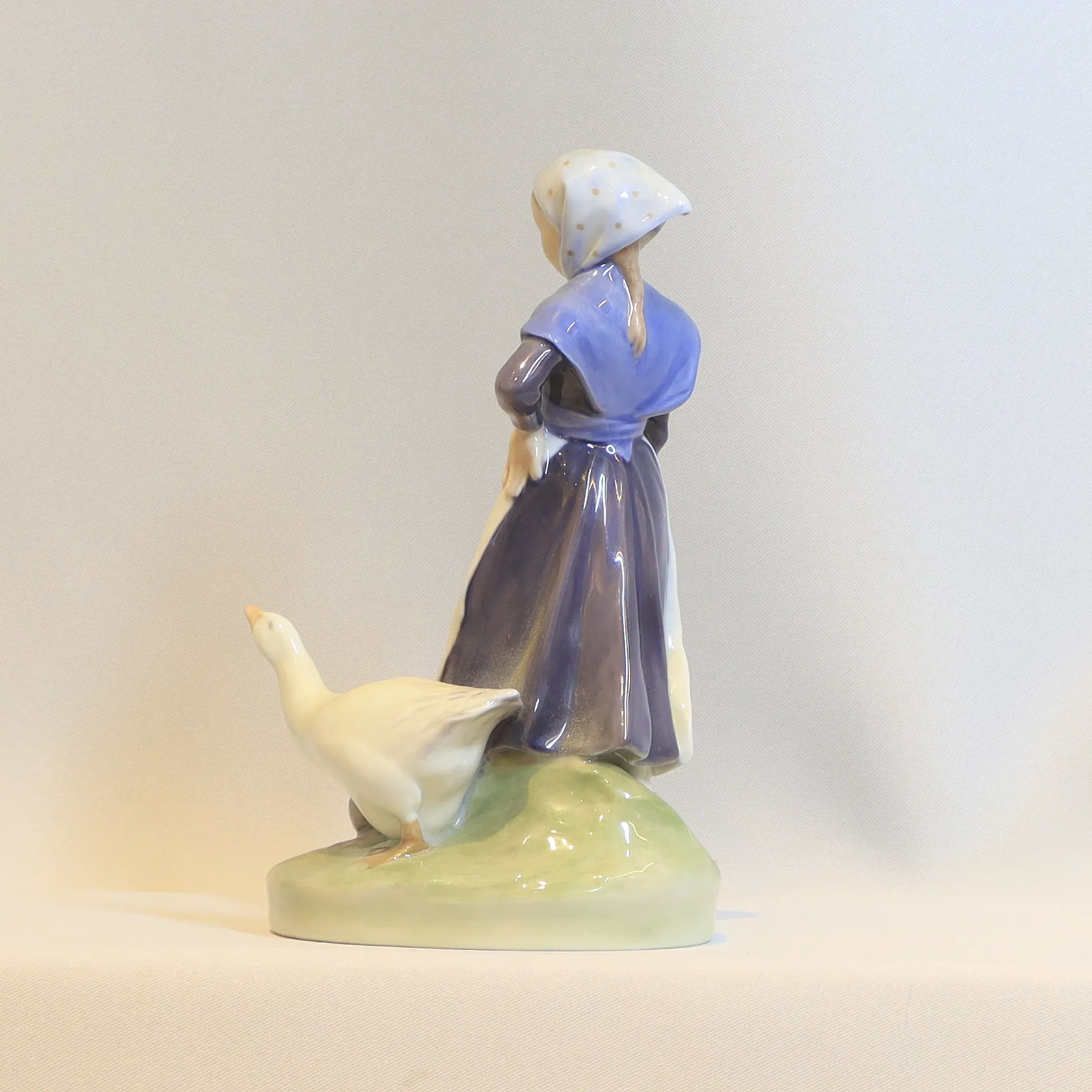 Figurin Royal Copenhagen, Kvinna med gås, modell nr 528, signerad ZV, höjd 18 cm, smärre slitage