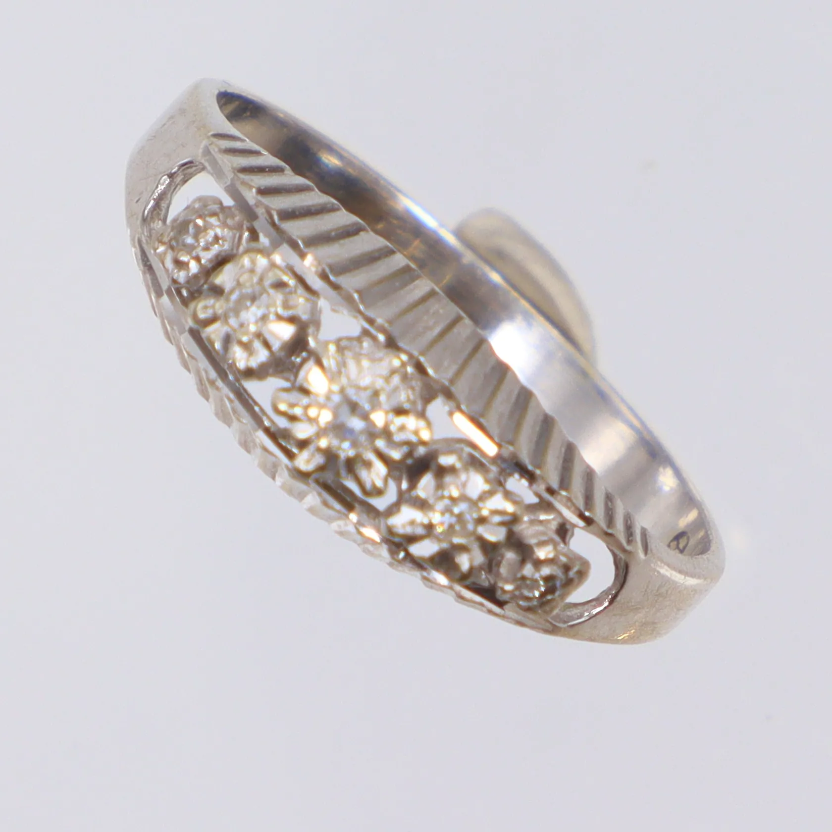 Ring i vitguld med diamanter 5xca0,005-0,015ct, stl16½ bredd 2-5mm, visst slitage 18K Vikt: 2,2 g.