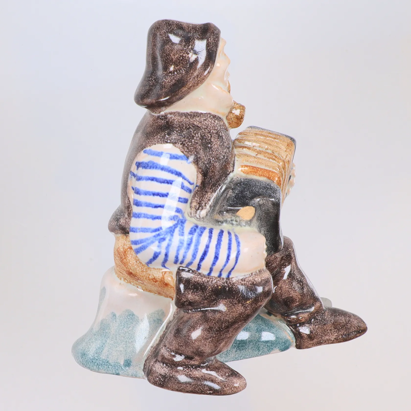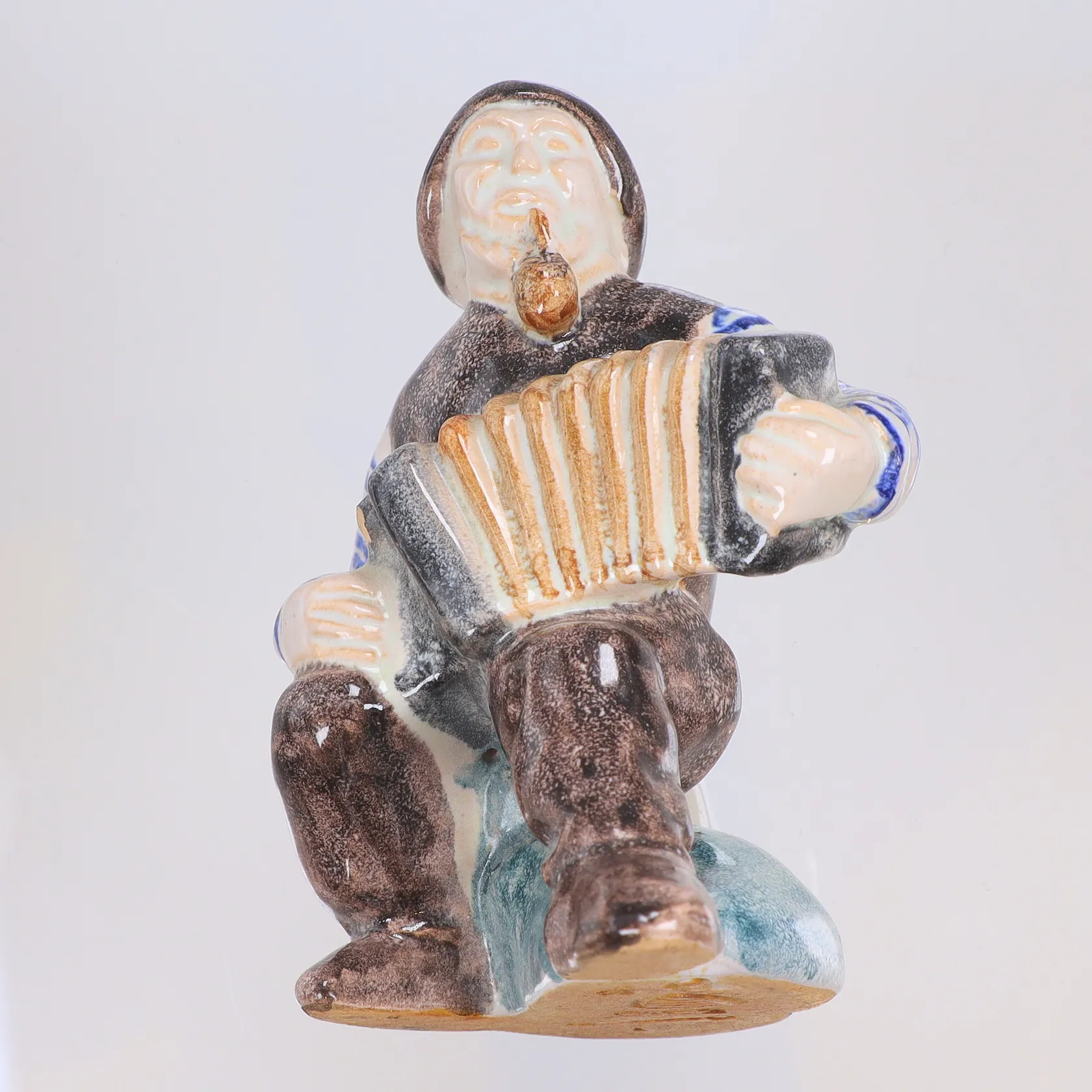 Figurin Fiskare med dragspel, Aluminia, märkt Denmark 5313, BF, höjd 10cm, omkring 1900-talets mitt, smärre nagg