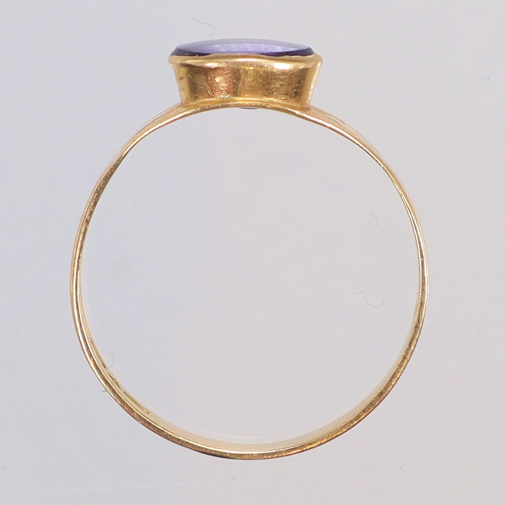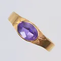 Ring med lila sten stl 18¾ bredd 3-6mm, något skev, AGLN (Nyol Ab) Mölndal 1991, 18K Vikt: 2,3 g.