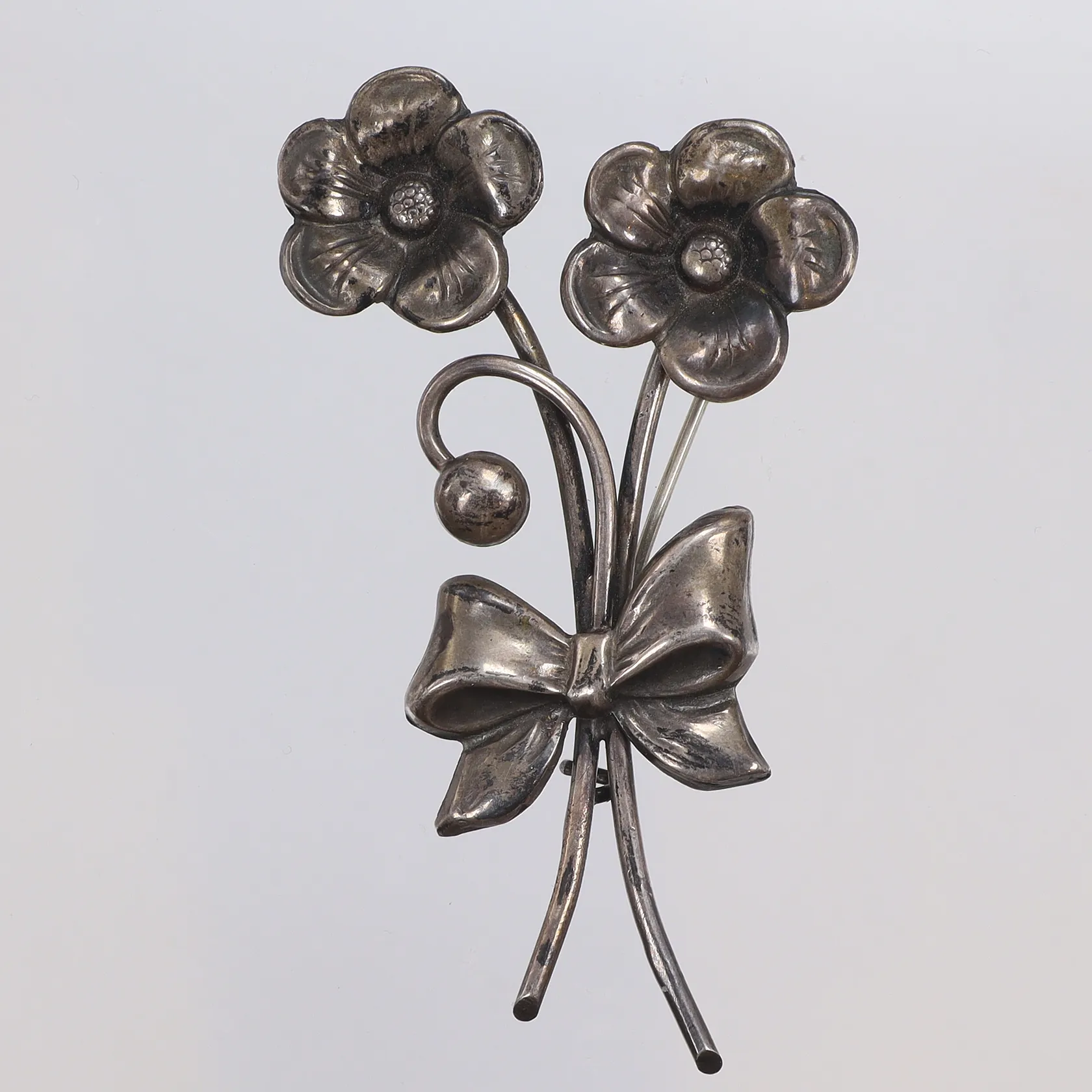 Brosch i form av blommor 36x68mm, något otydliga stämplar, omkring 1900-talets mitt, silver Vikt: 7,4 g.