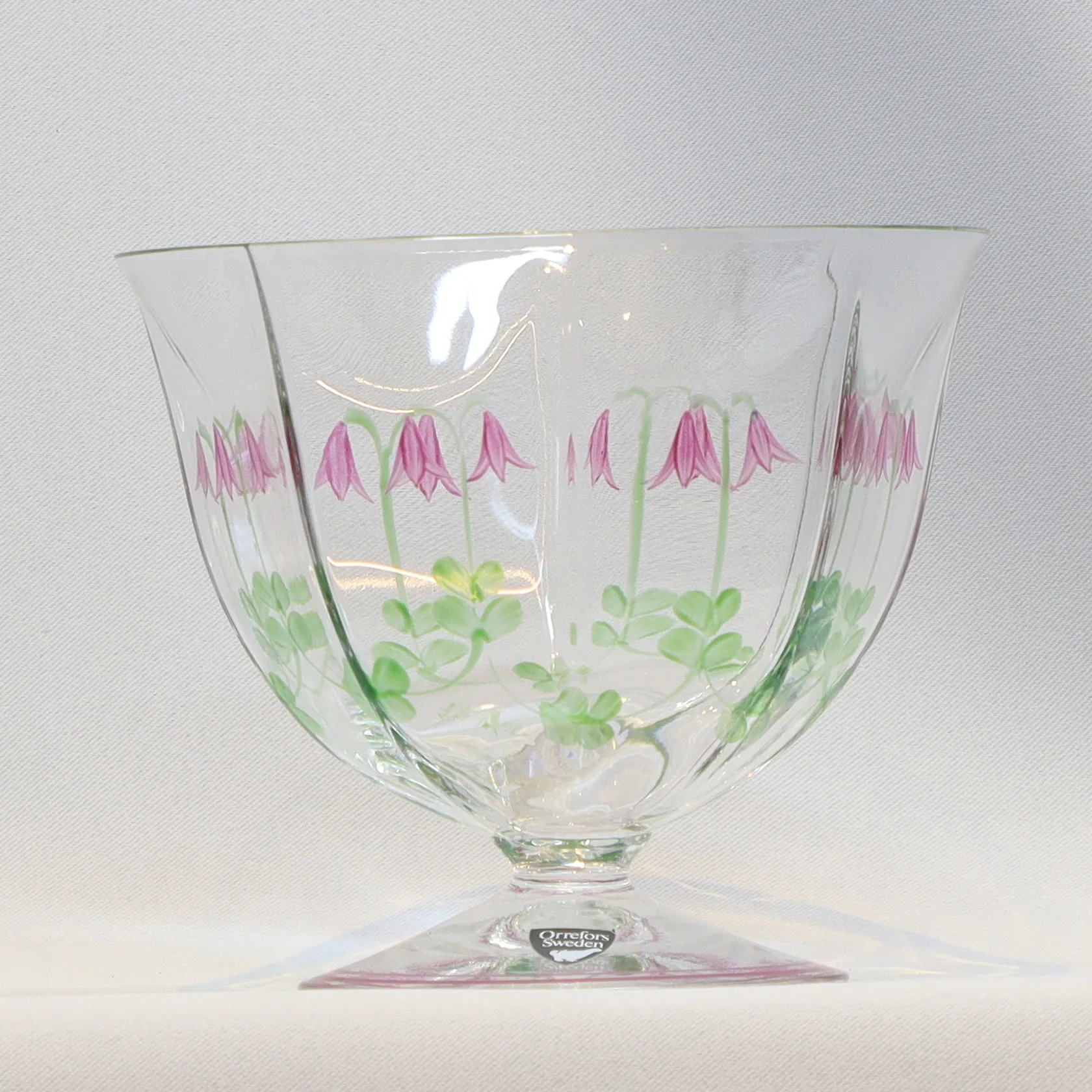 Skål på fot, Orrefors, Maja, Eva Englund, höjd ca 11cm, Ø 13cm, viss dekorbortfall, handmålat glas