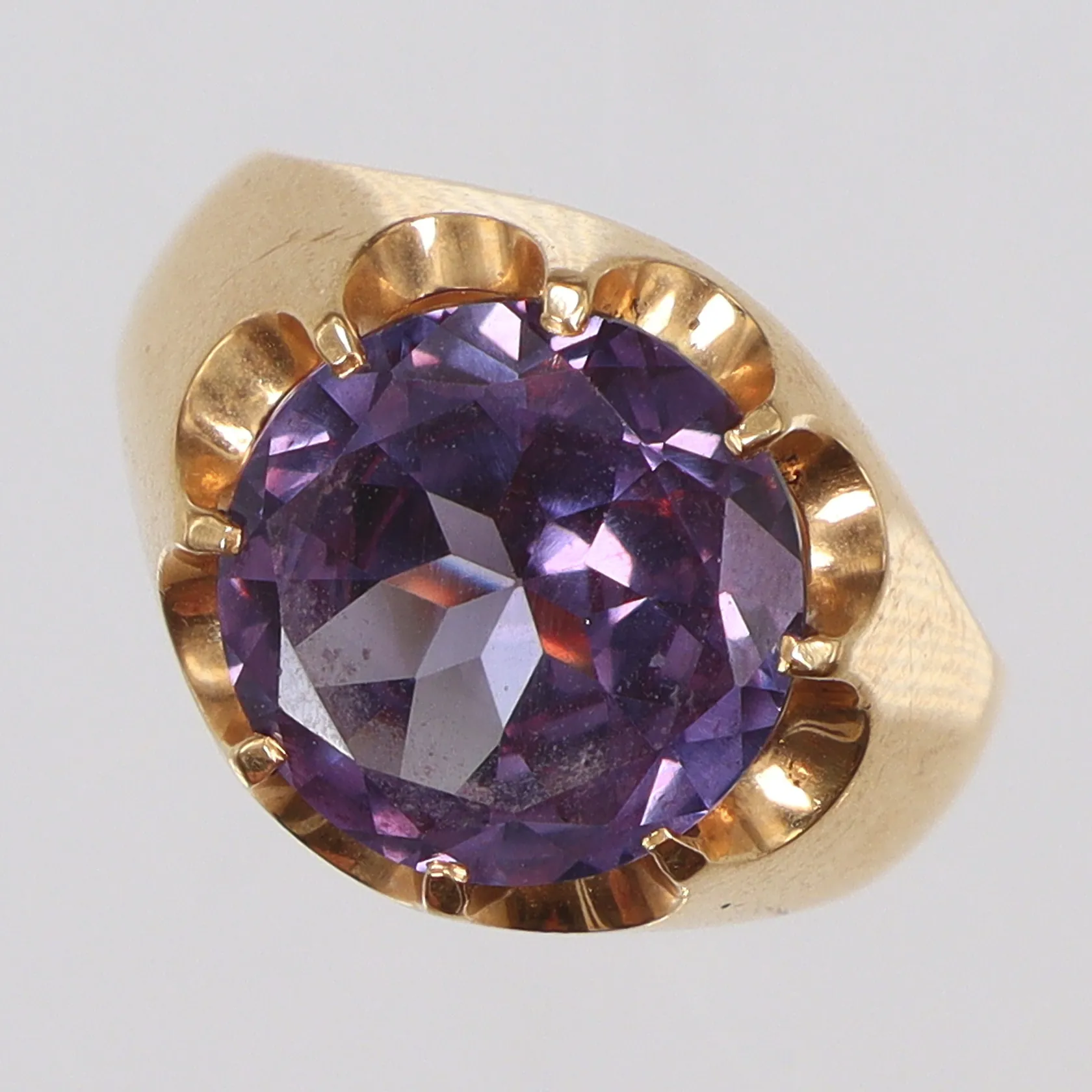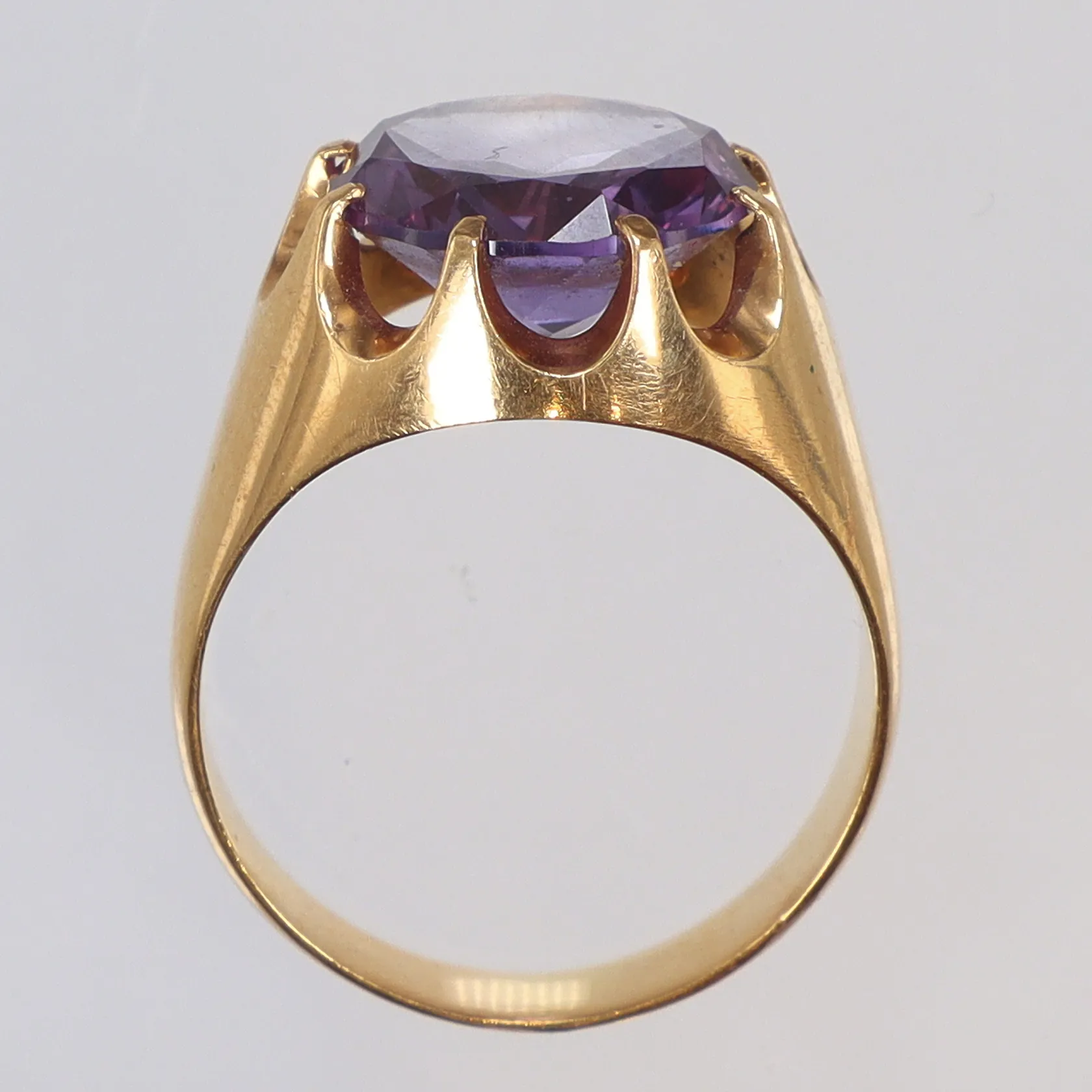 Ring med lila sten stl 19½ bredd 4-14mm, 18K Vikt: 9,9 g.