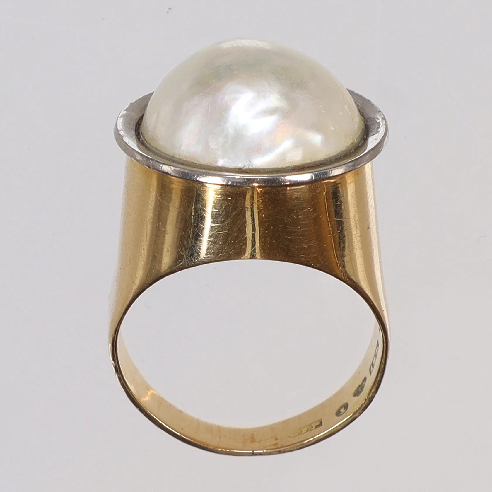 Ring med mabépärla stl 16 bredd 4-17mm, GFP (Guldateljen Fryklund & Pålsson) Stockholm 1963, 18K Vikt: 9 g.