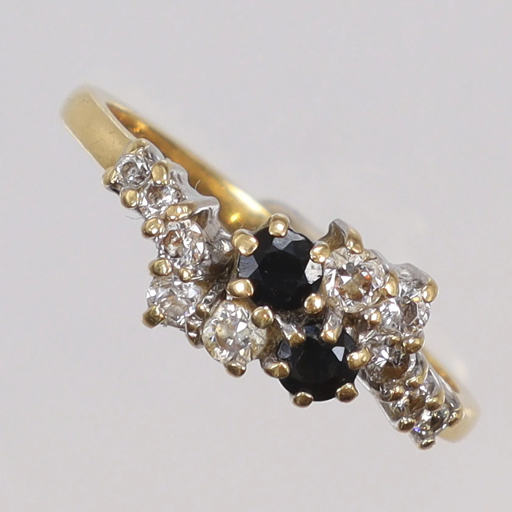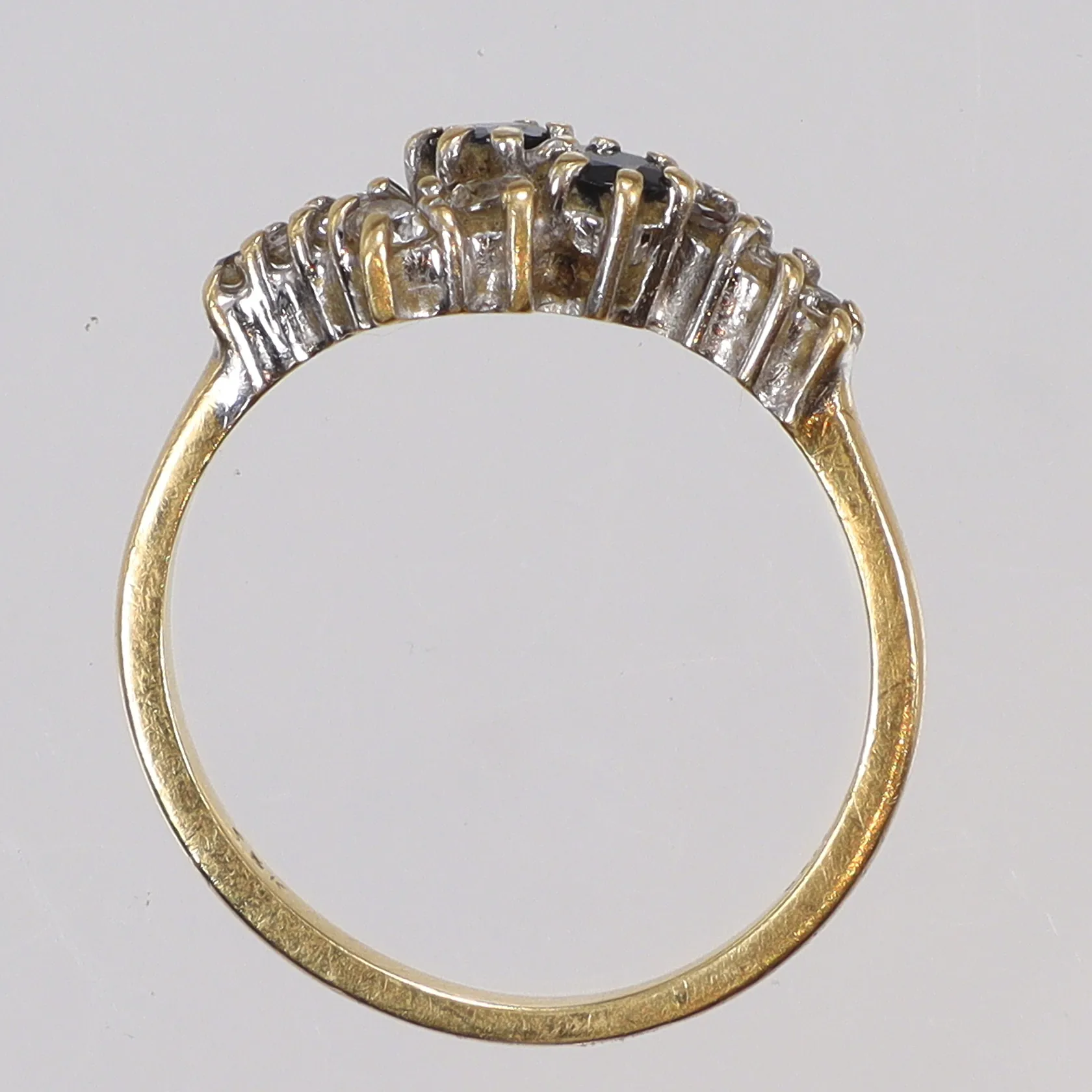 Ring med blå och vita stenar, stl 17½, bredd 2-8mm, 18K Vikt: 3,6 g.