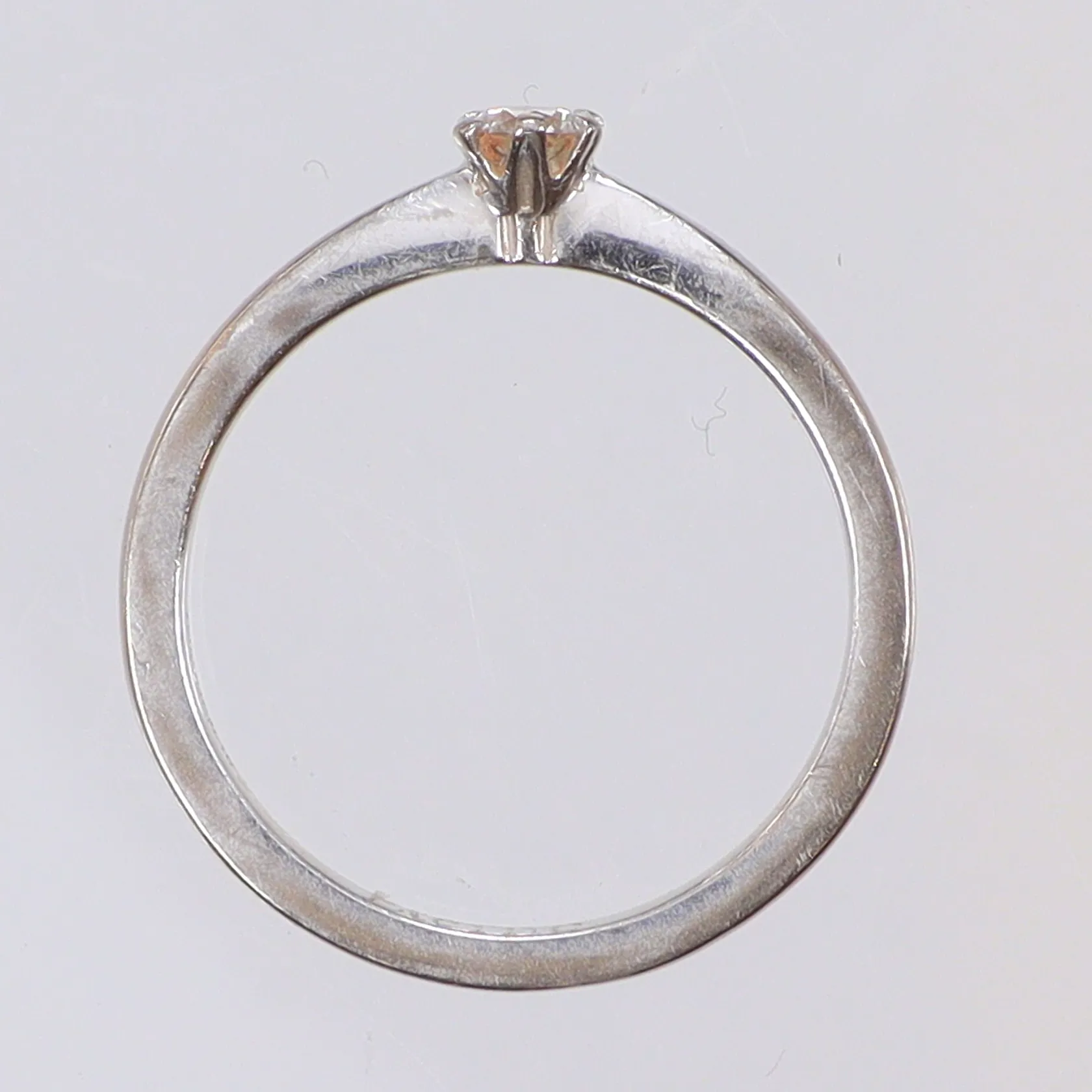 Ring i vitguld med 1xca0,10ct stl 16½ bredd 1-4mm, gravyr, GHA 18K Vikt: 2,5 g.