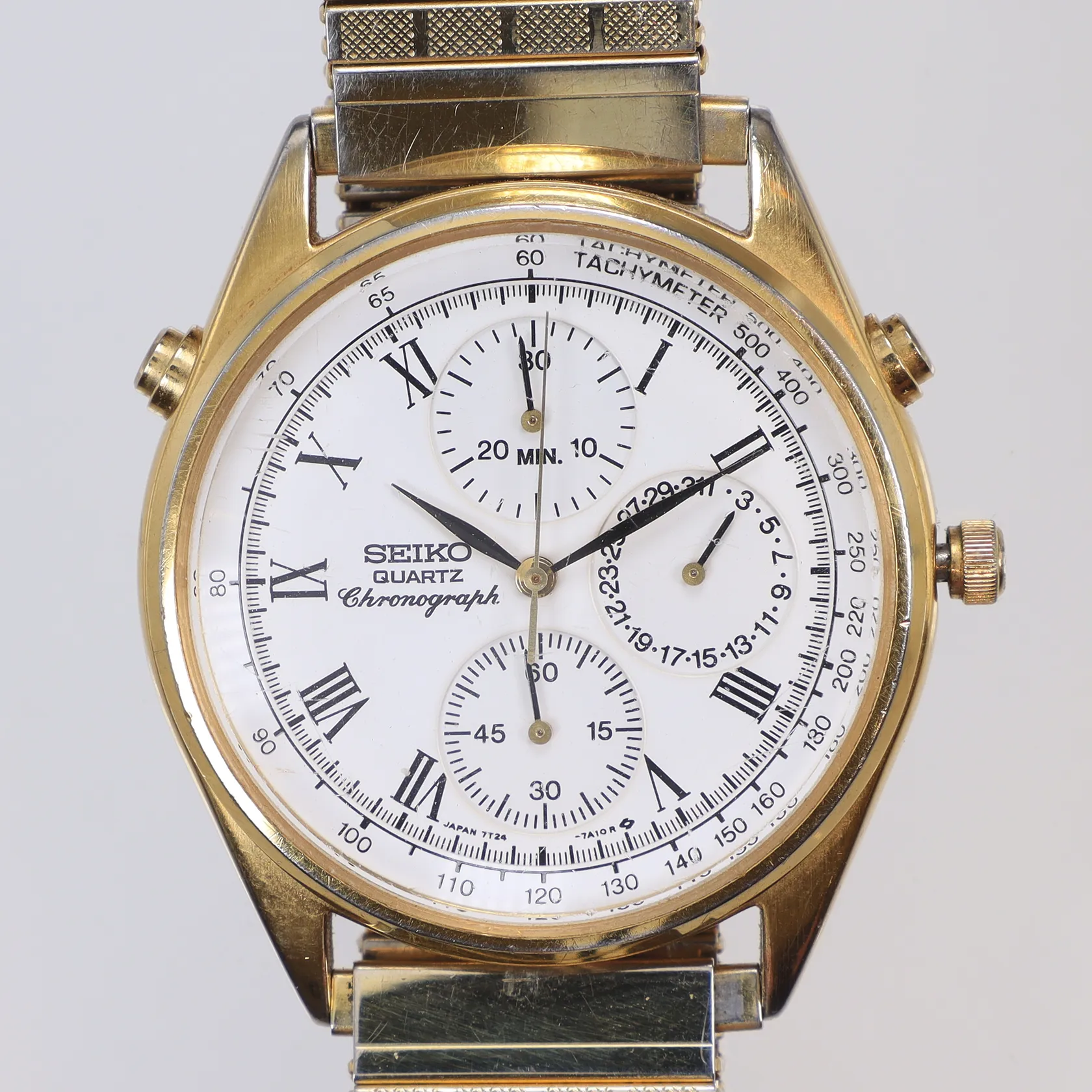 Herrur Seiko Chronograph Ø38mm ref nr 7T24-7A0B boett nr 935196 med flexlänk repigt glas quartz