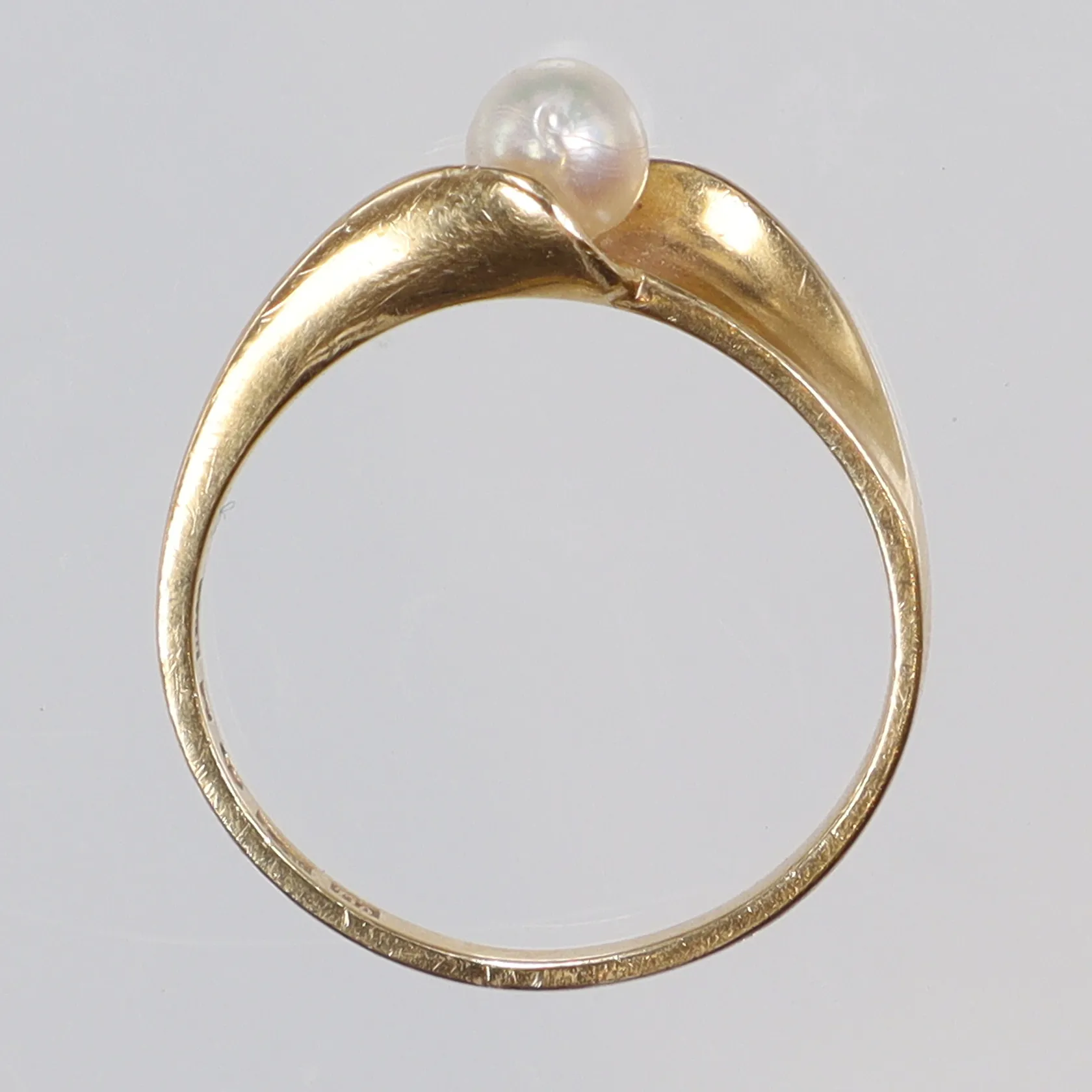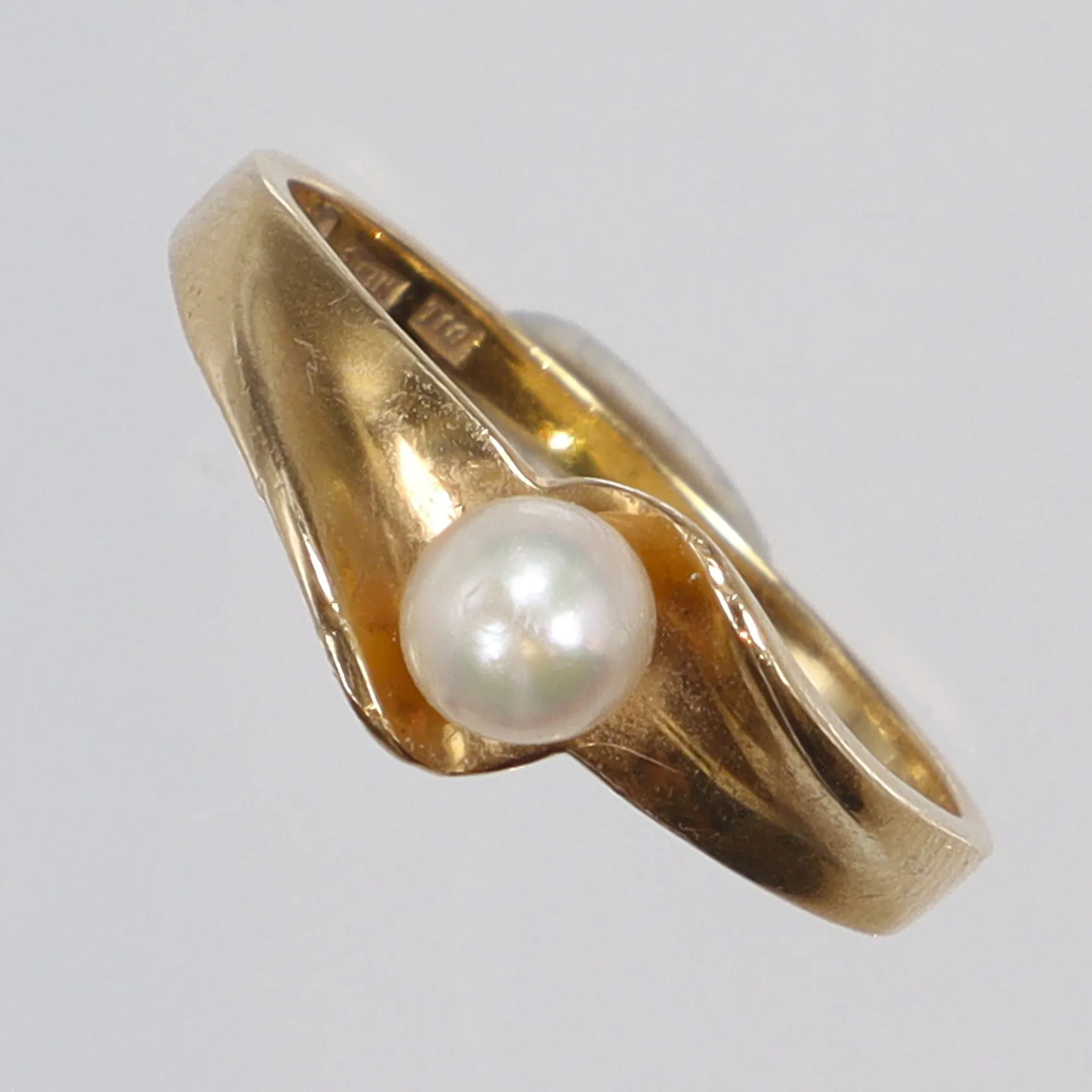 Ring med pärla, stl 16¾, bredd 1,5-7mm, BEH (Bengt Hallberg Guldsmeds AB, Köping 1993) 18K Vikt: 3 g.