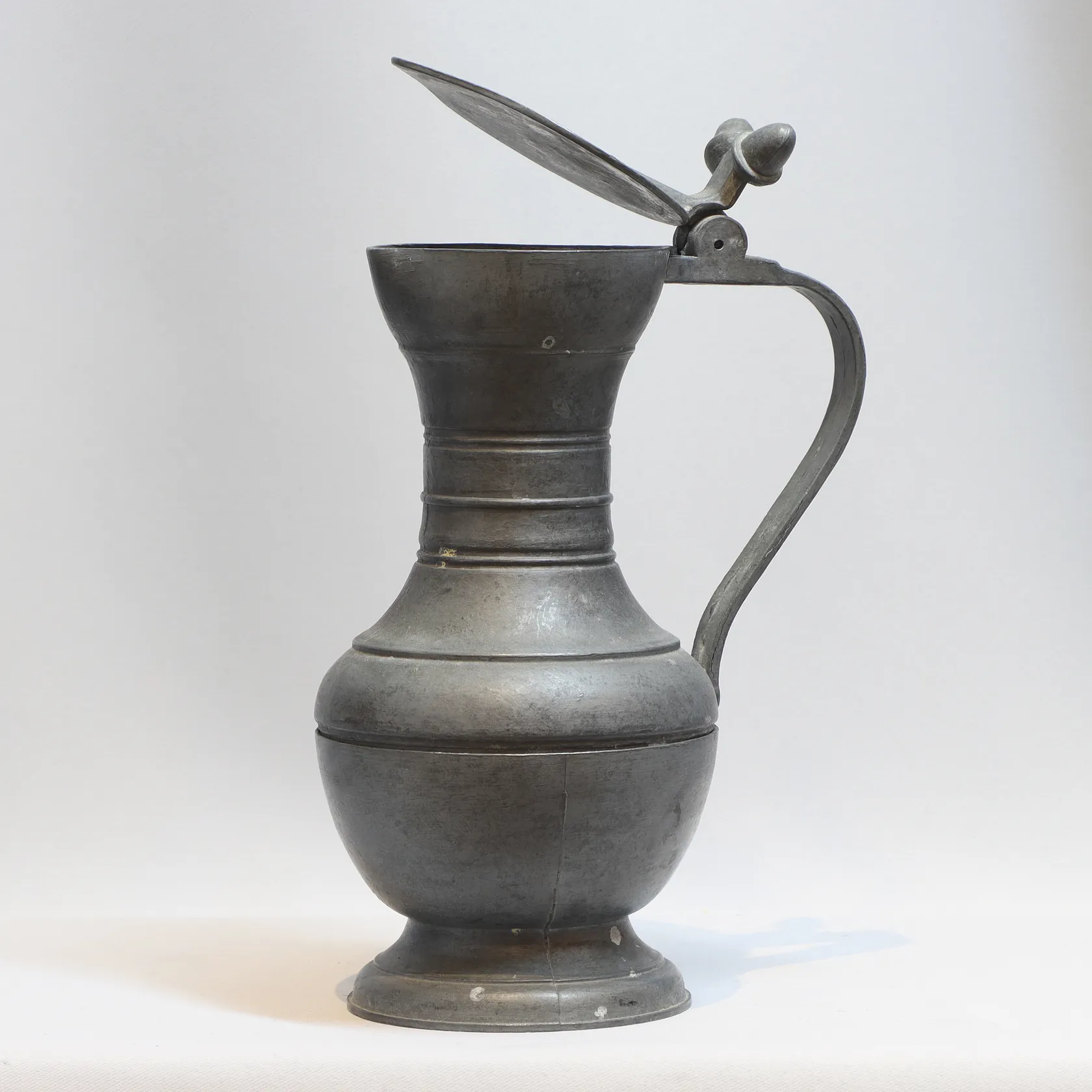 Kanna med lock, tenn, höjd ca 20 cm