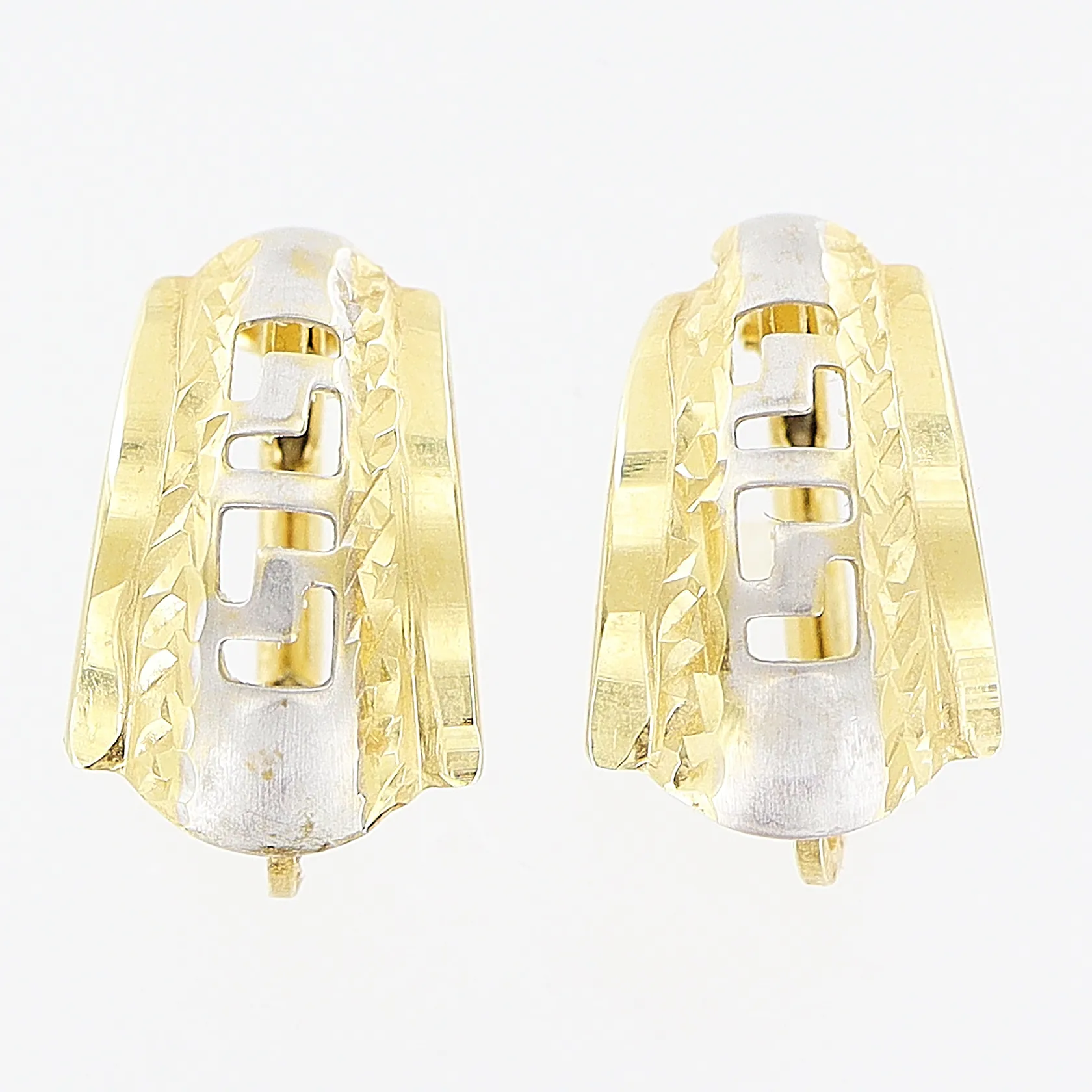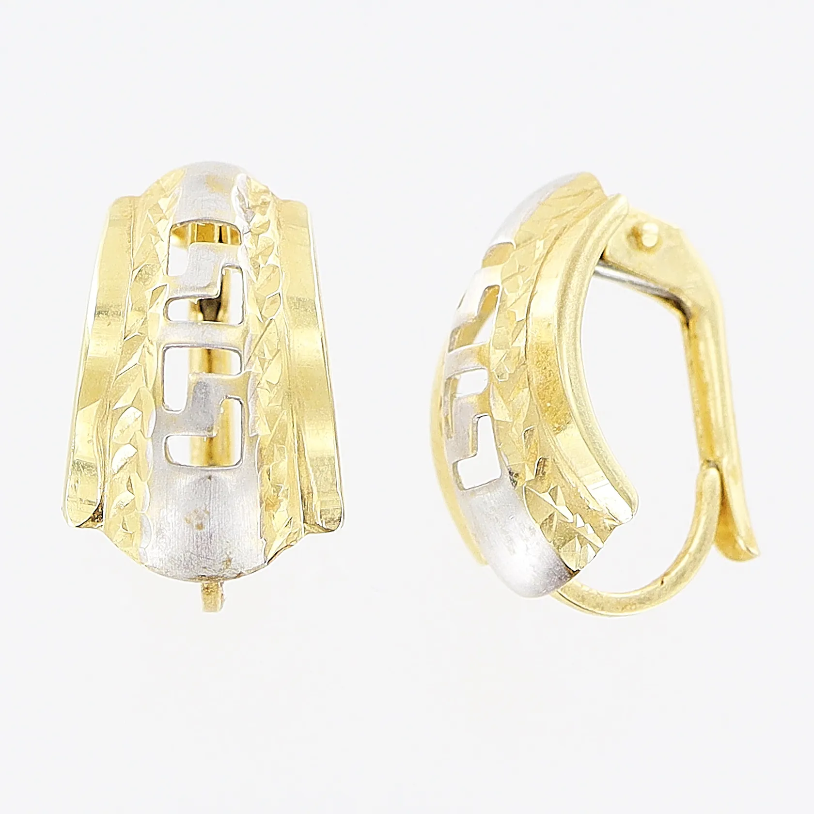 Ett par örhängen, 15mm, genombruten dekor, vit/gulguld, 14K Vikt: 1,7 g.