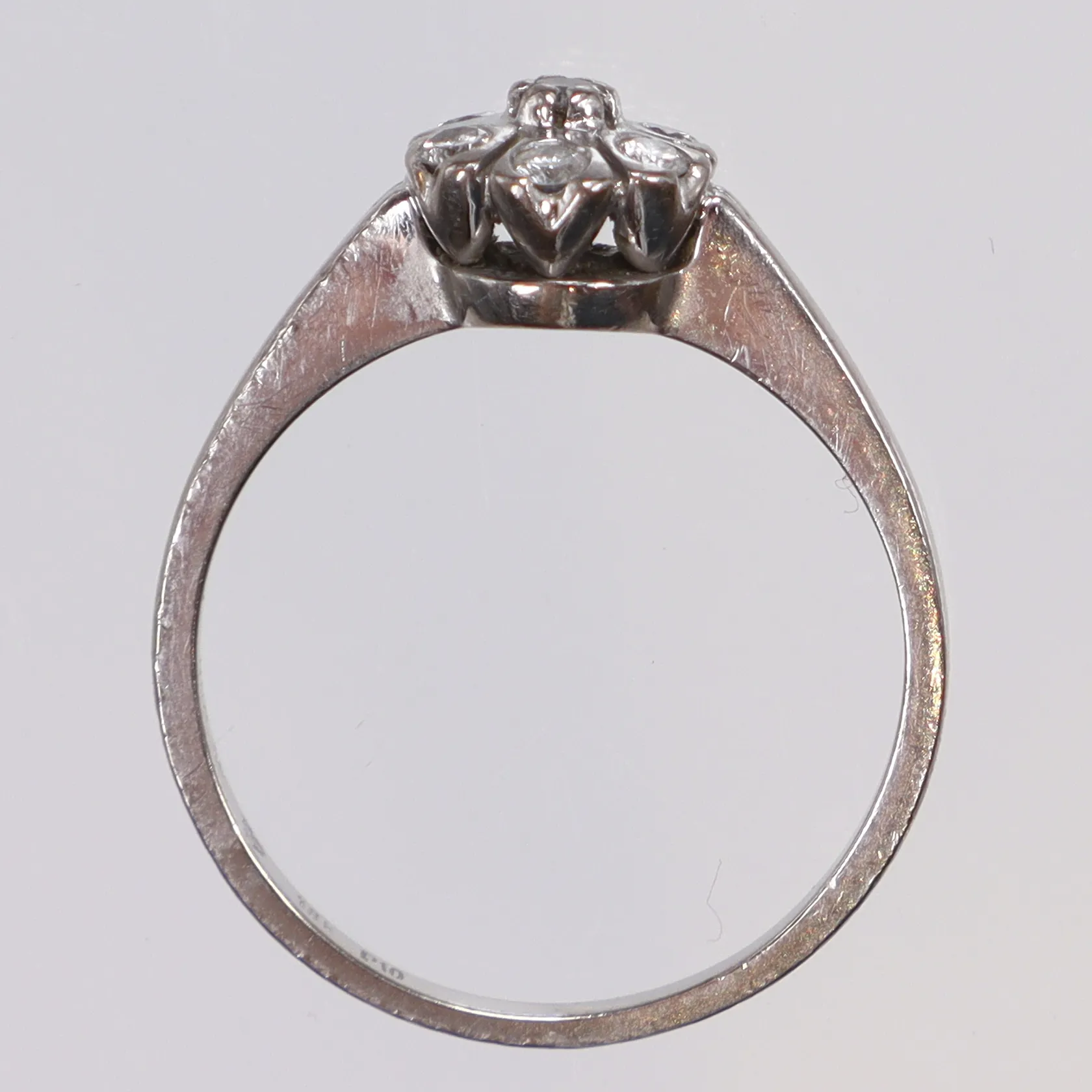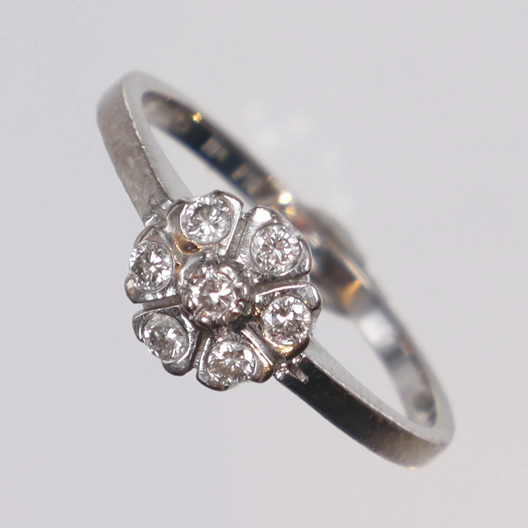 Ring vitguld i carmosé med diamanter 7xca0,02-0,03ct stl 16¼ bredd 1,5-6mm, SSÄ 18K Vikt: 2,6 g.