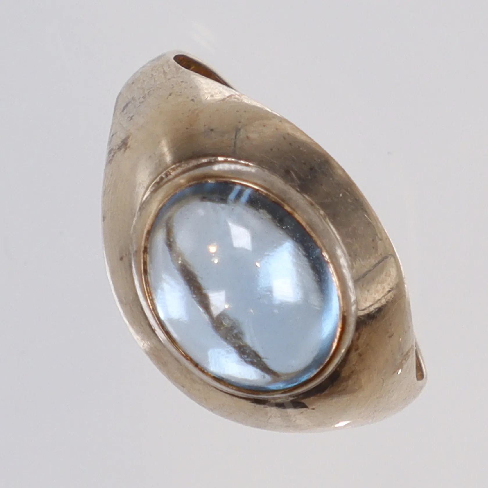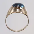Ring med cabochonslipad blå sten stl 16 bredd 2-10mm, BEH (Bengt Hallberg) Köping 1961, 18K Vikt: 2,2 g.