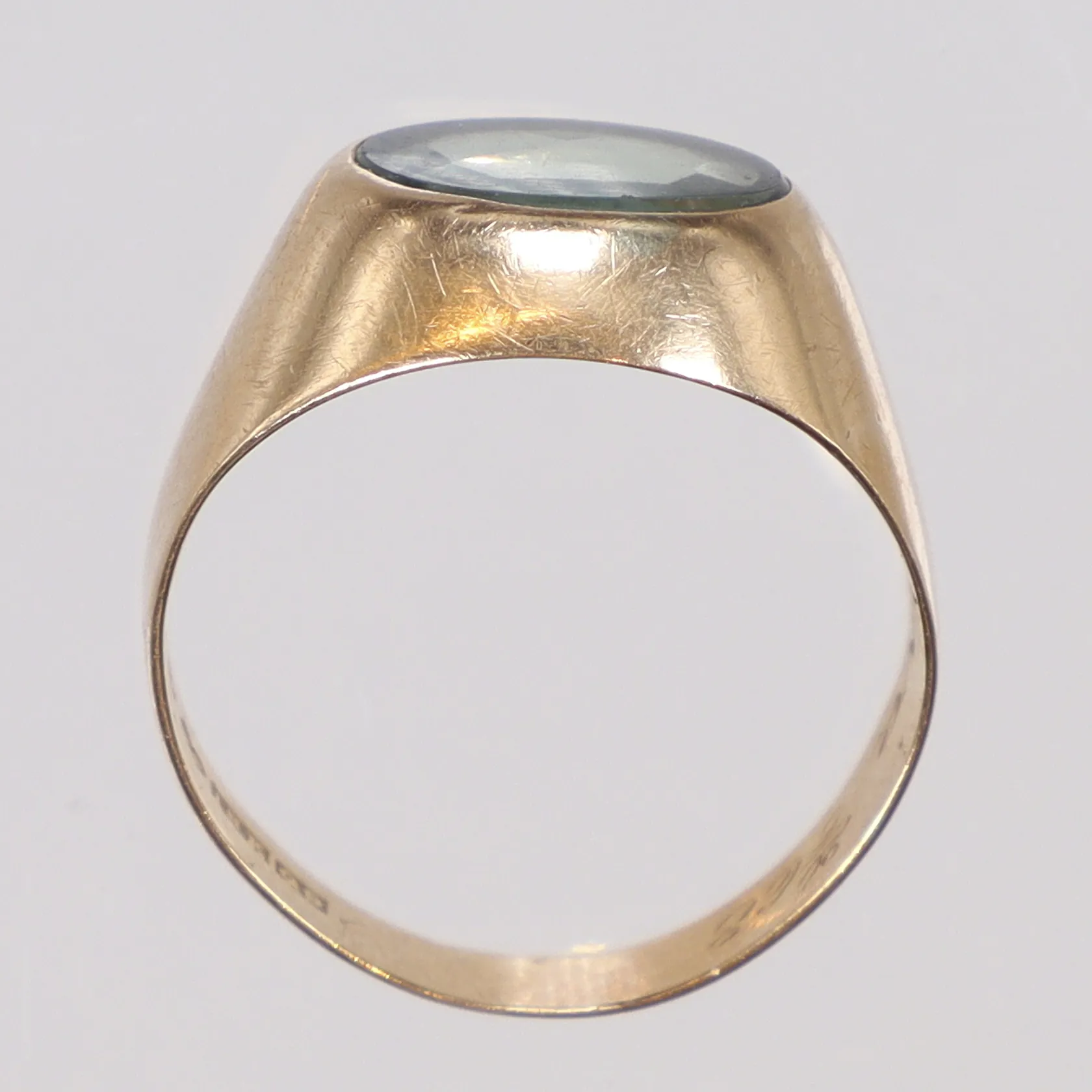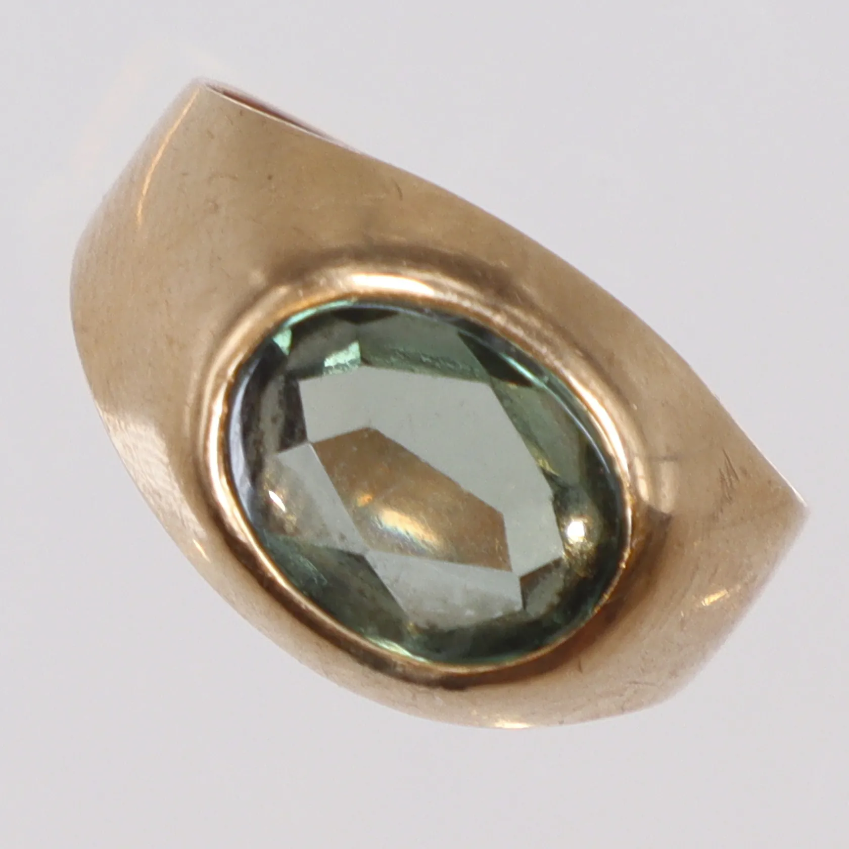 Ring med grön sten, stl 16¼, bredd 3-6mm, RGAB (Rahlens Guldsmeds Ab, Borås 1966) gravyr, 18K Vikt: 2,9 g.