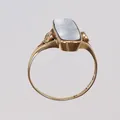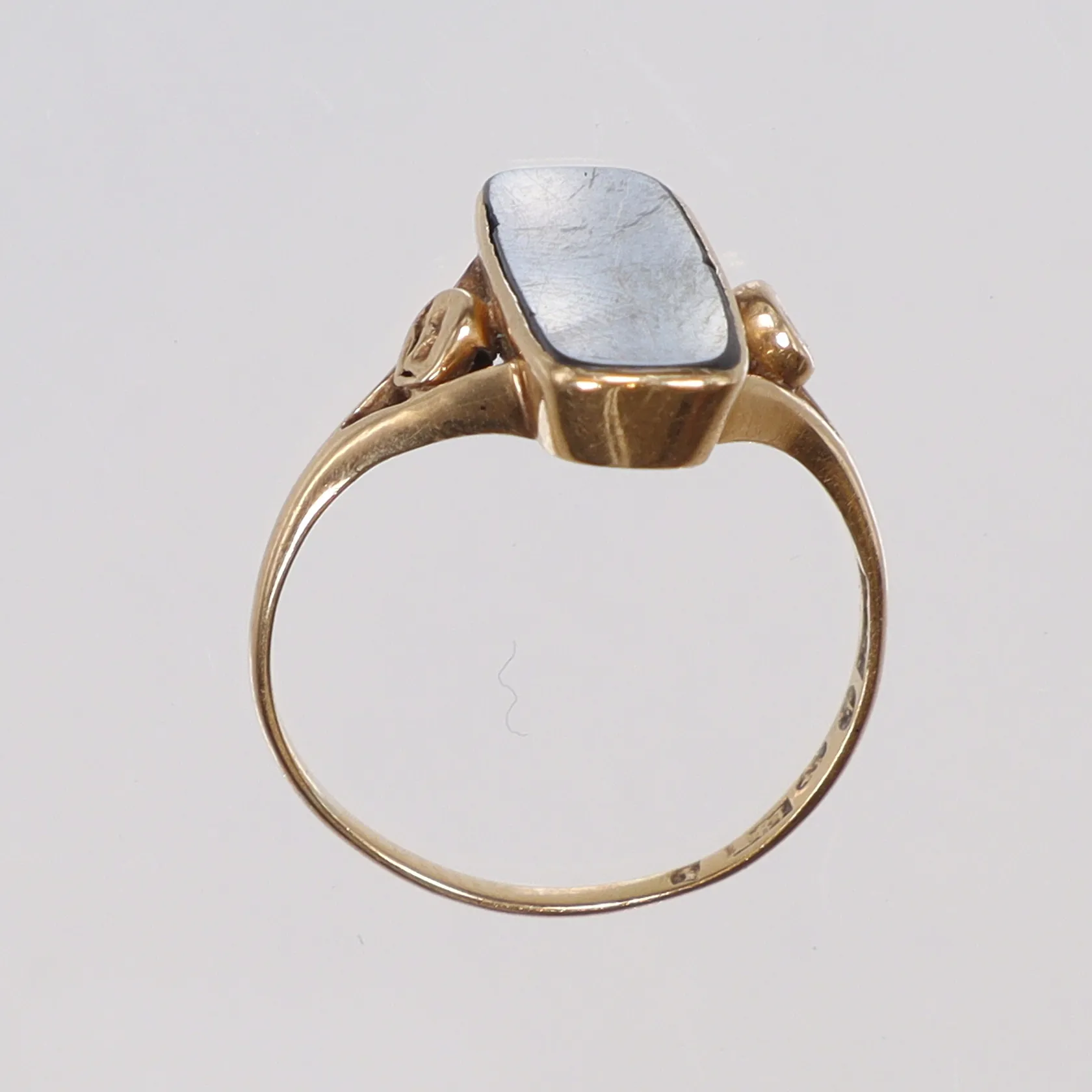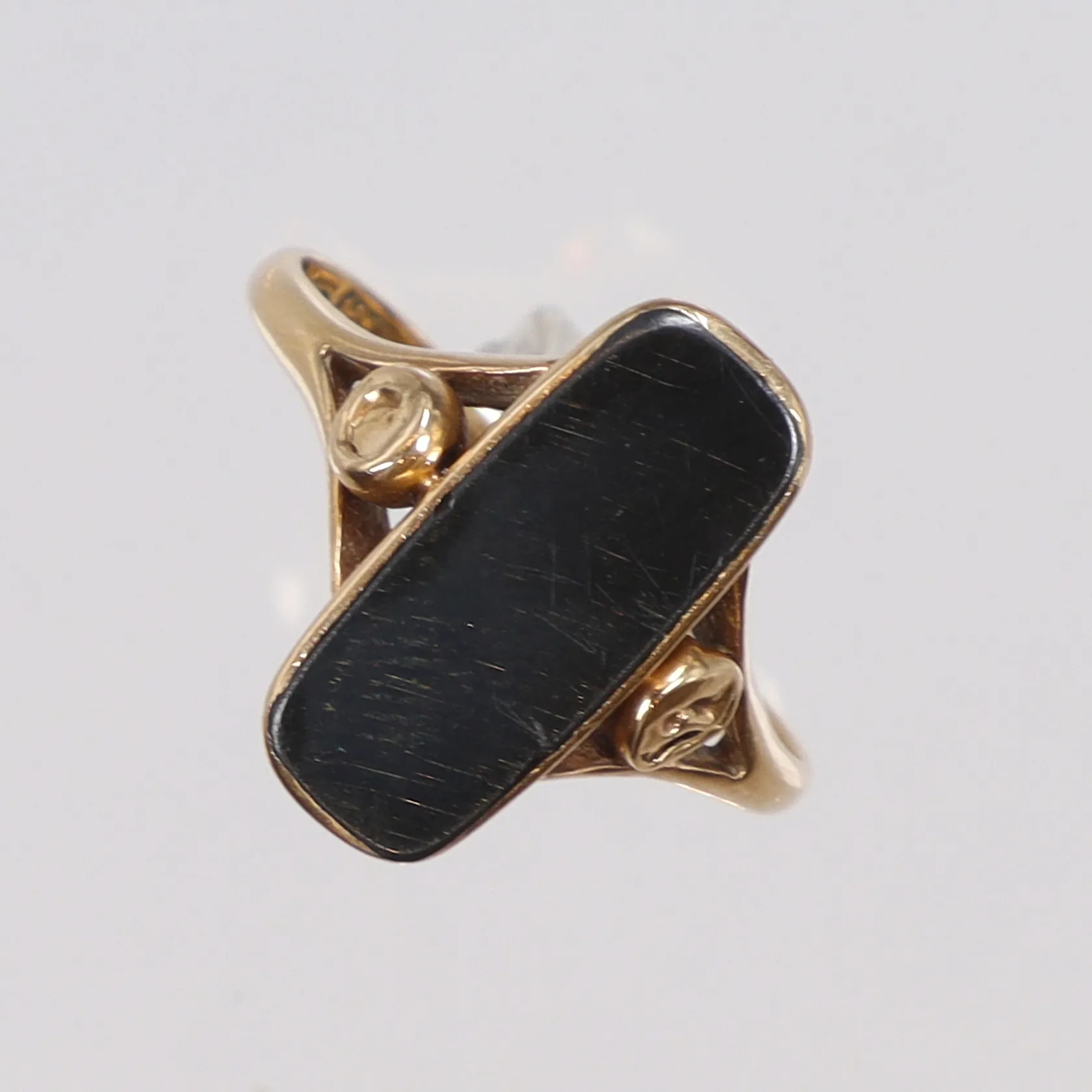 Ring med svart sten Onyx stl 17½ bredd 1,5-15mm, något otydliga stämplar, svenska 1920-tal, 18K Vikt: 2,9 g.