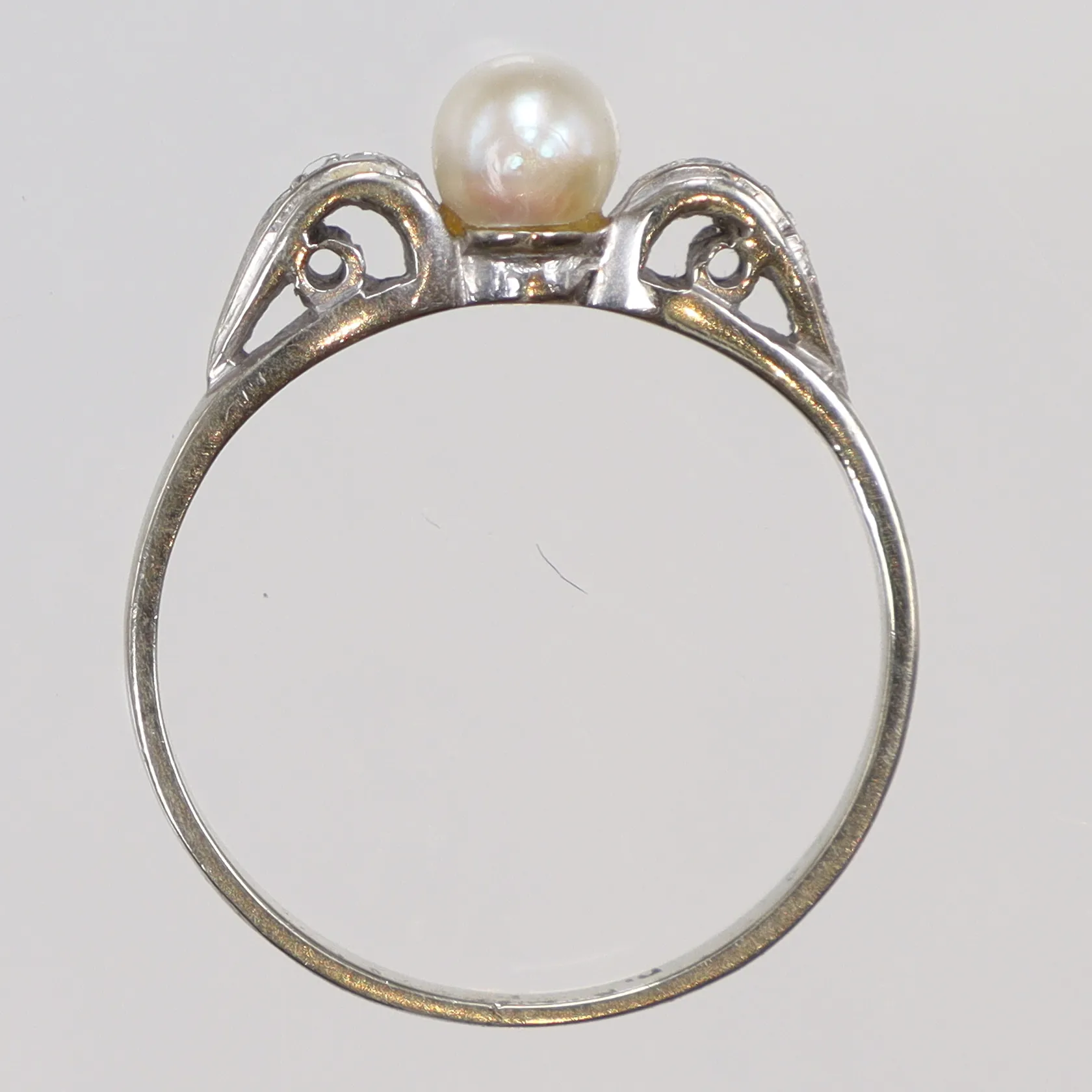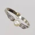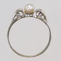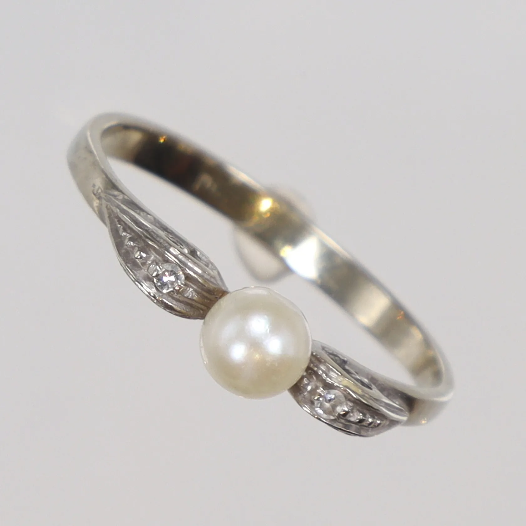 Ring i vitguld med diamanter 2xca0,01ct samt odlad pärla stl 17 bredd 2-4mm, 18K Vikt: 1,9 g.