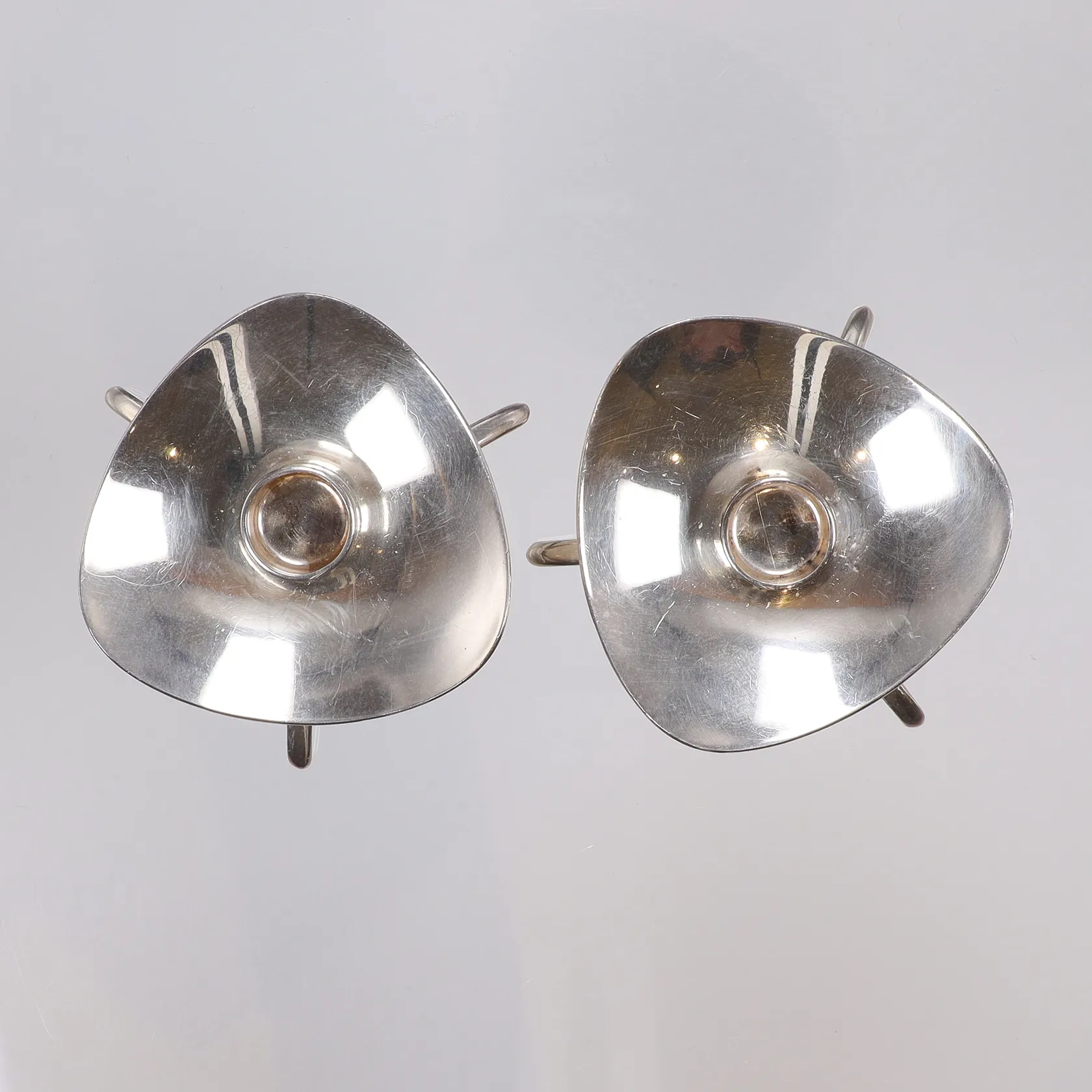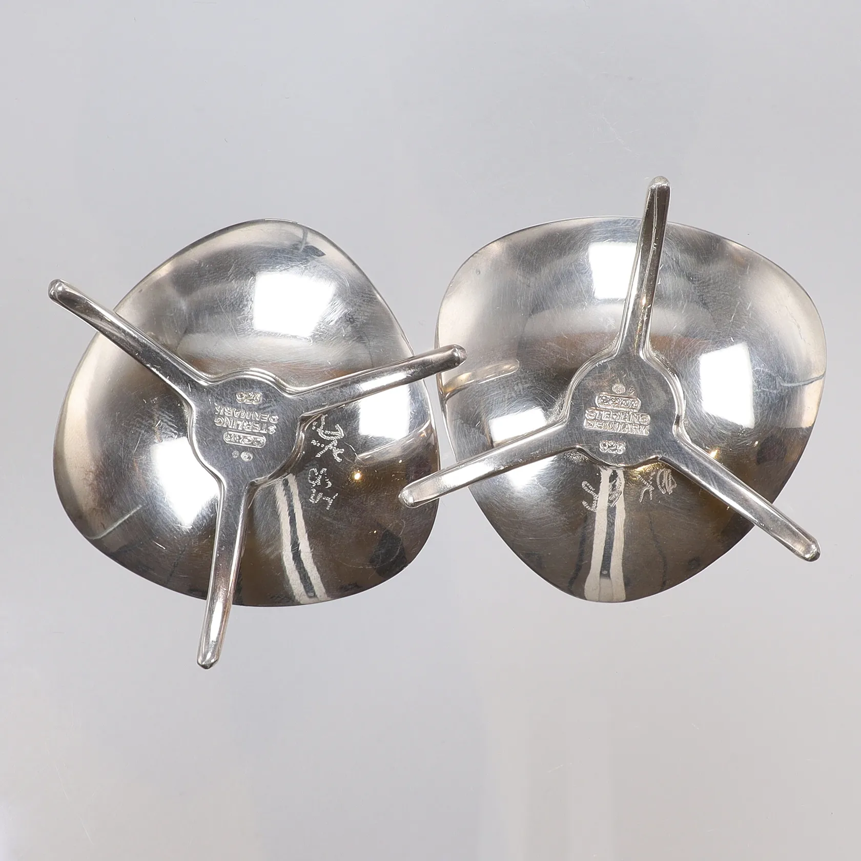 Ett par Ljusstakar på fötter, Carl Cohr Danmark, bredd ca 6cm höjd ca 20mm, liten inristning i botten, silver 925/1000 Vikt: 61,4 g.