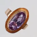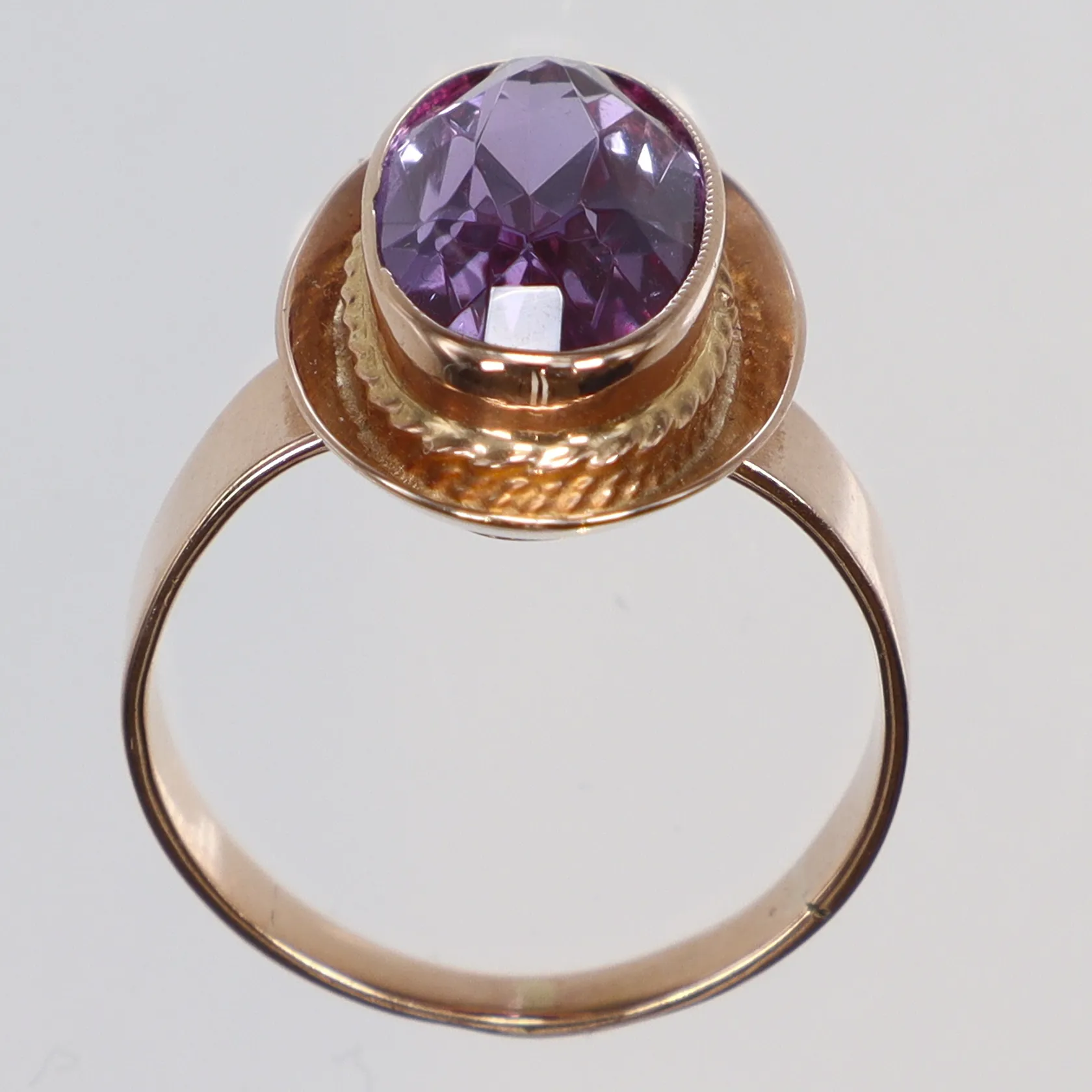 Ring med lila slipad sten, troligen ametist stl 17½ bredd 2-21mm, sovjetiska stämplar, 14K Vikt: 5,3 g.
