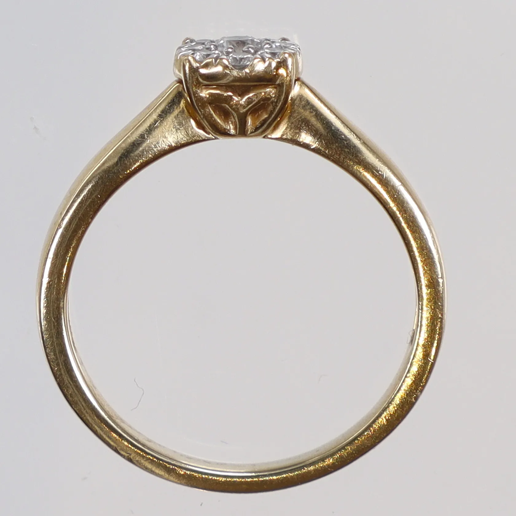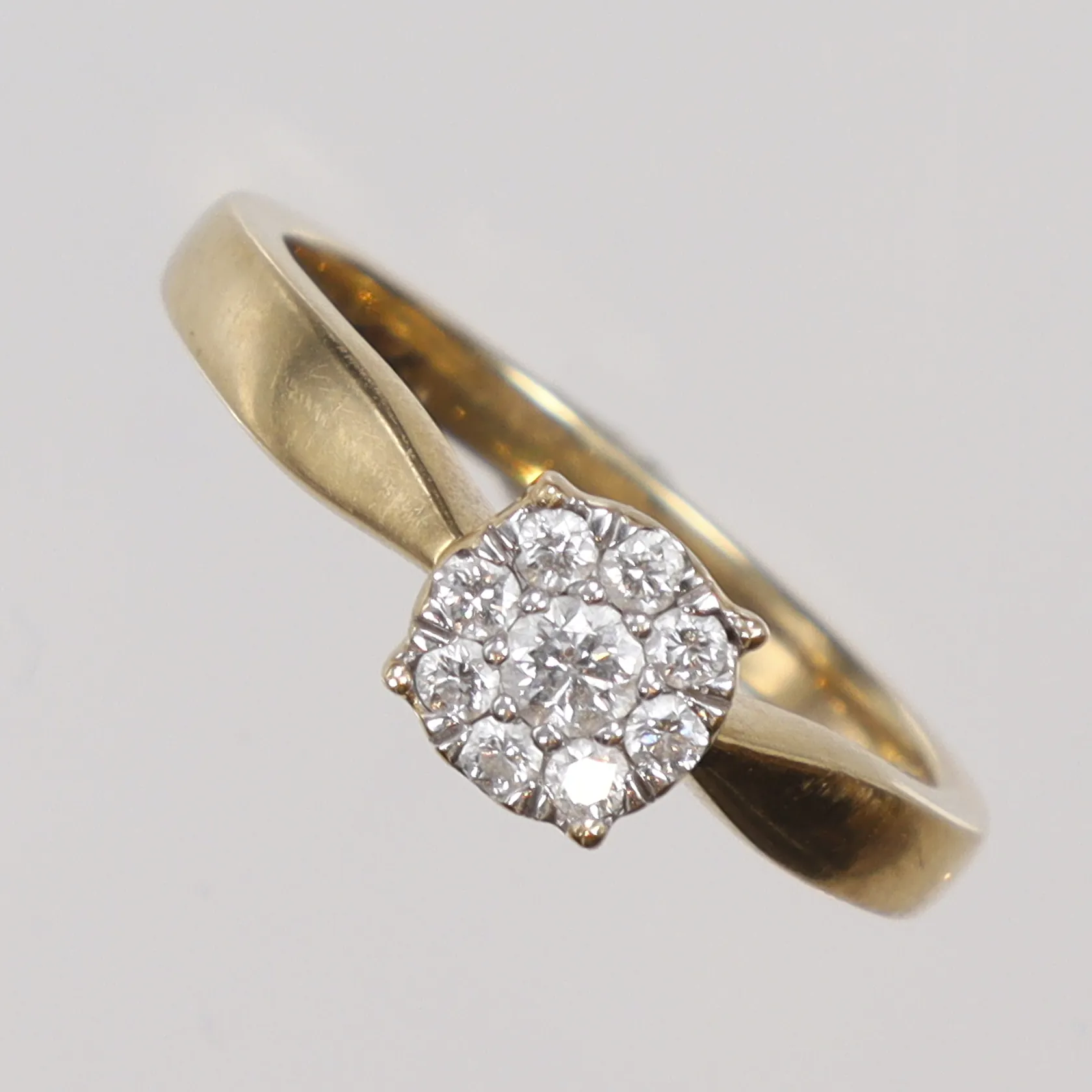 Ring med diamanter totalt ca 8x 0,01ct, 1 x 0,10ct, stl ca 16½, GHA, 18K Vikt: 3,2 g.
