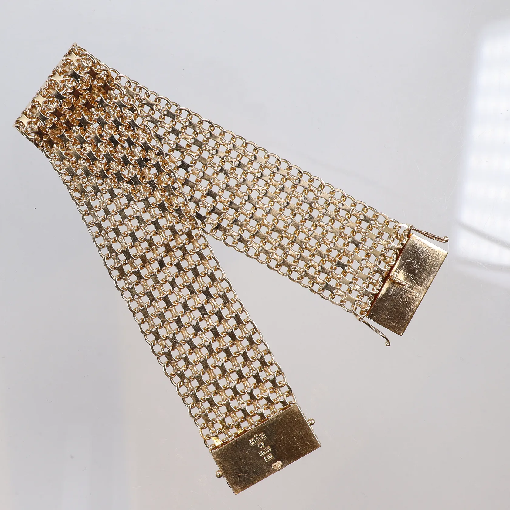 Armband X-länk 21,5cm bredd 24mm, HÅN (Norens Guldatelje) Stockholm 1968, 18K Vikt: 42,9 g.