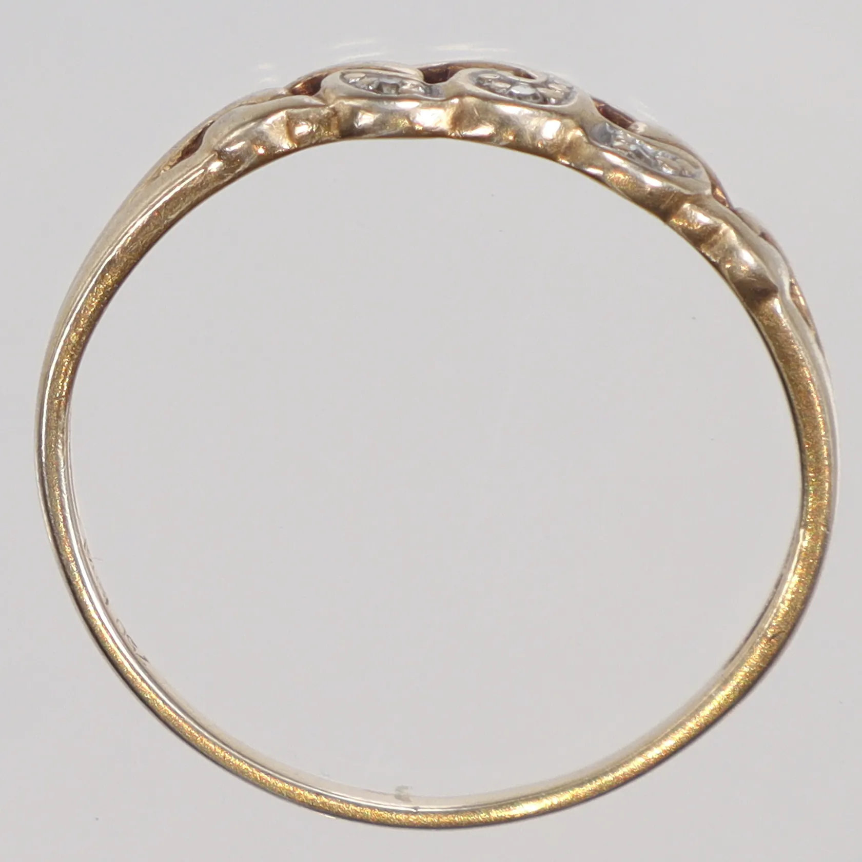 Ring med diamanter totalt ca 0,005ct, stl ca 18, bredd 1-4mm, GHA, 18K Vikt: 1,5 g.