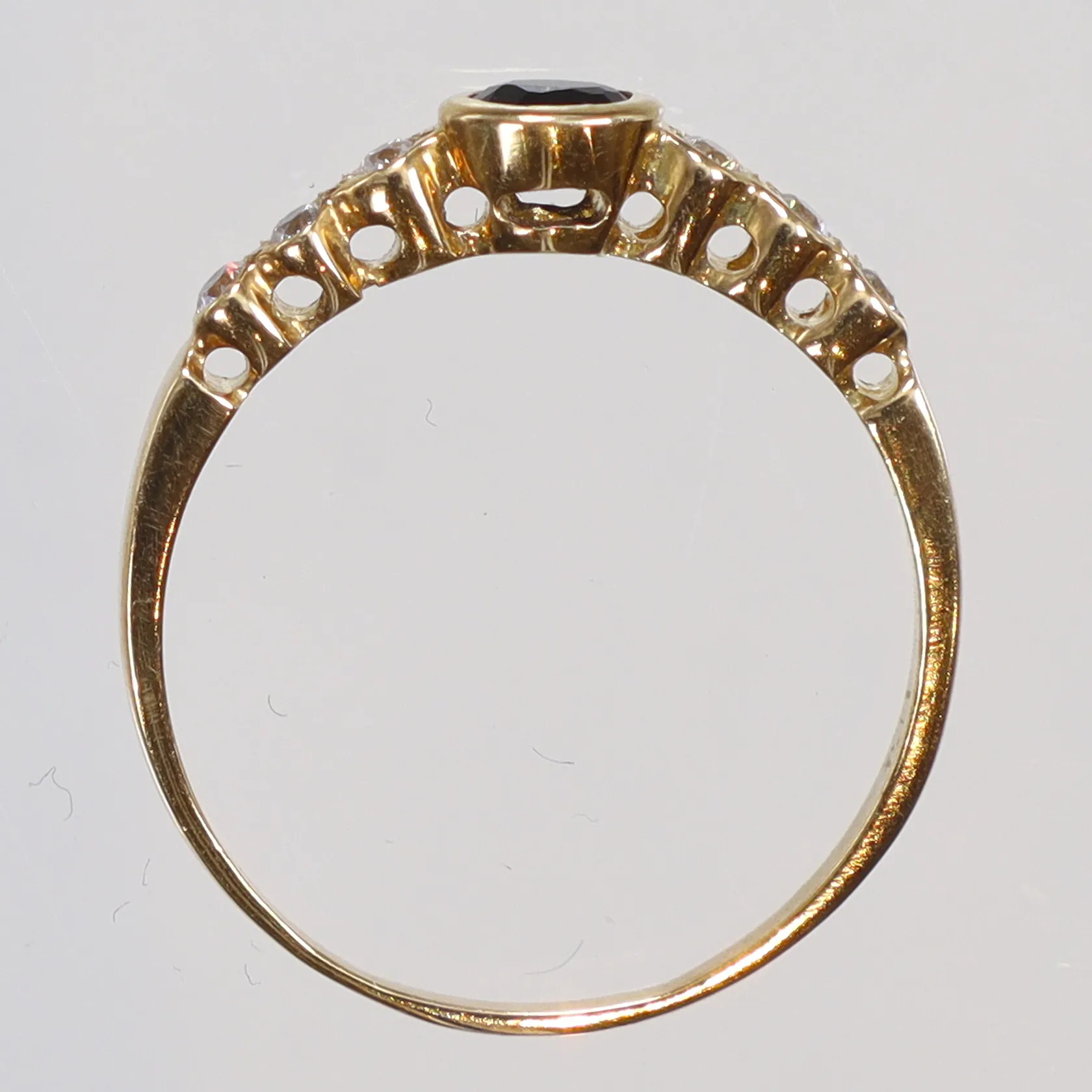 Ring med blå samt vita stenar stl 18½ bredd 1-3,5mm 18K Vikt: 2,1 g.