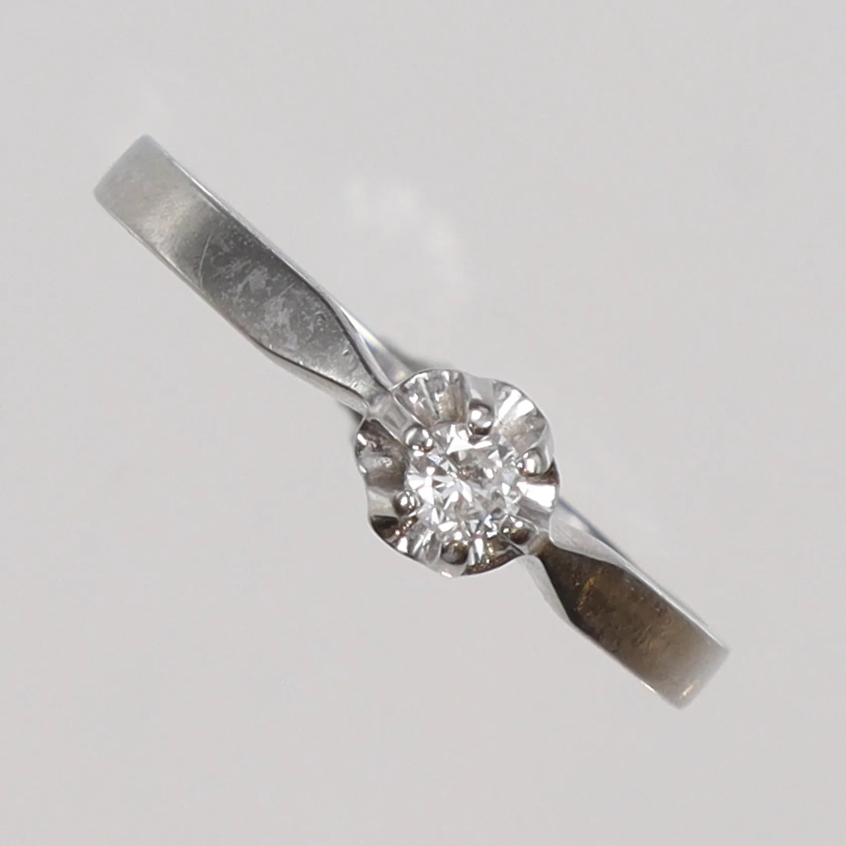 Ring i vitguld med diamant 1xca0,09ct stl 18¼ bredd 2-4mm, 18K Vikt: 2,3 g.