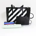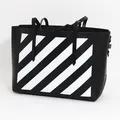 Väska Off White, Binder tote, ca 34x26x15cm, svart läder med vitt diagonalt tryck, dustbag, oanvänd i nyskick, OBS FINNS FÖR VISNING PÅ ÖSTERMALM