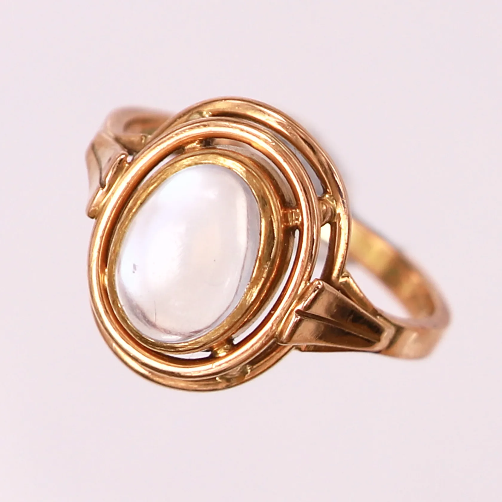 Ring med cabochonslipad ljusblå sten