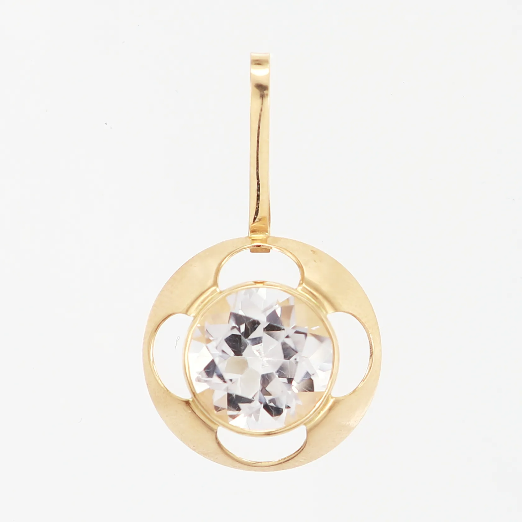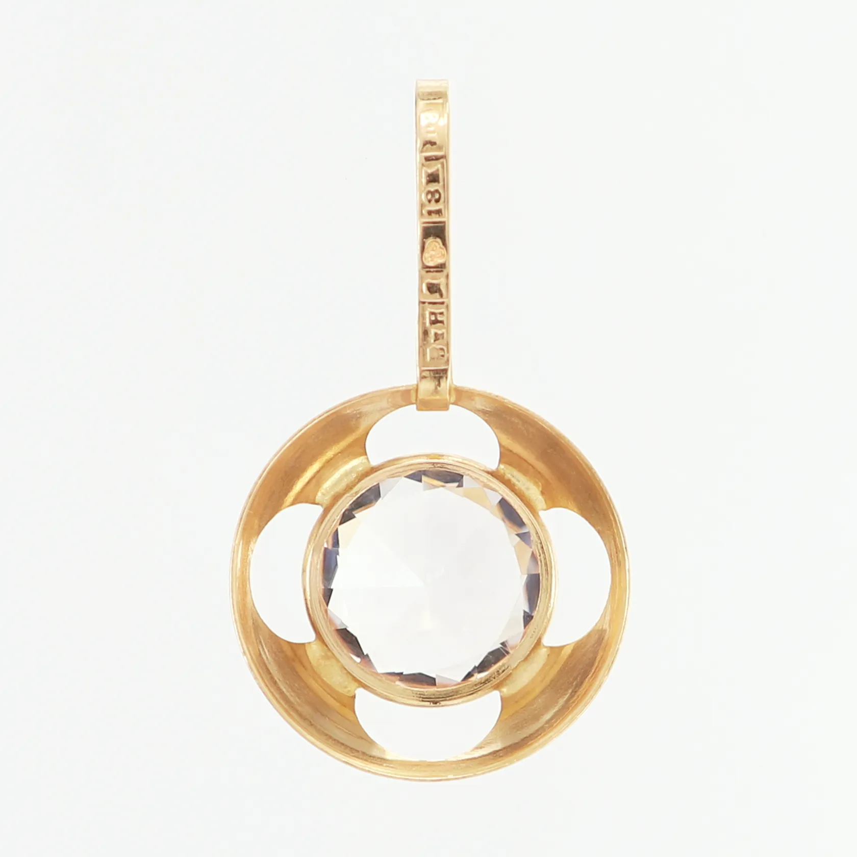 Hänge med vit sten, 35x20mm, litet nagg på stenens culet, 18K Vikt: 2,6 g.