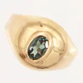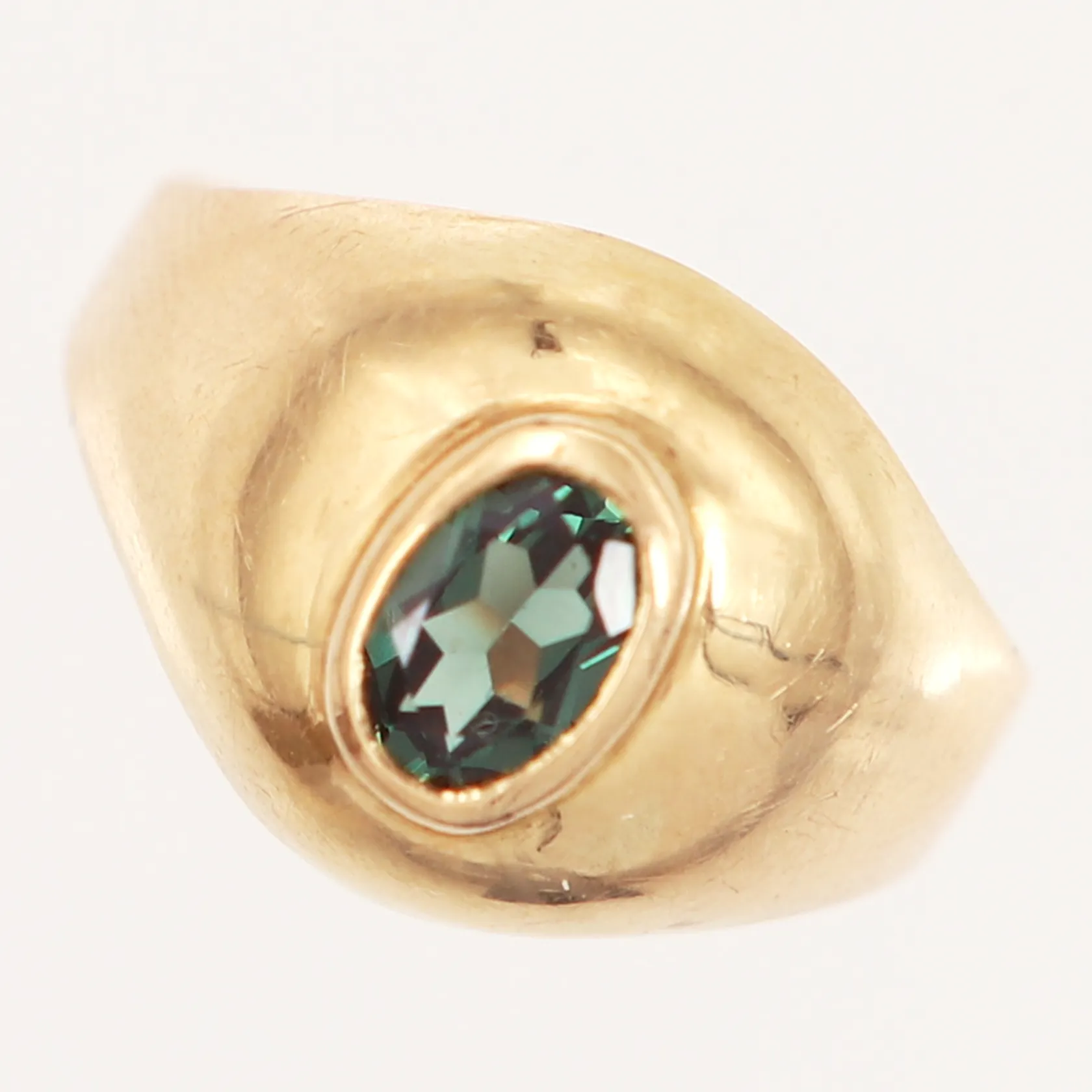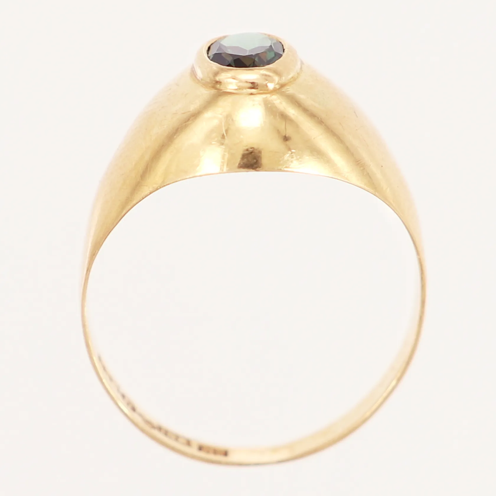 Ring med grön sten, stl 18, bredd: 2,5-13mm, Svedboms år. 1962 Vetlanda, 18K Vikt: 2,5 g.