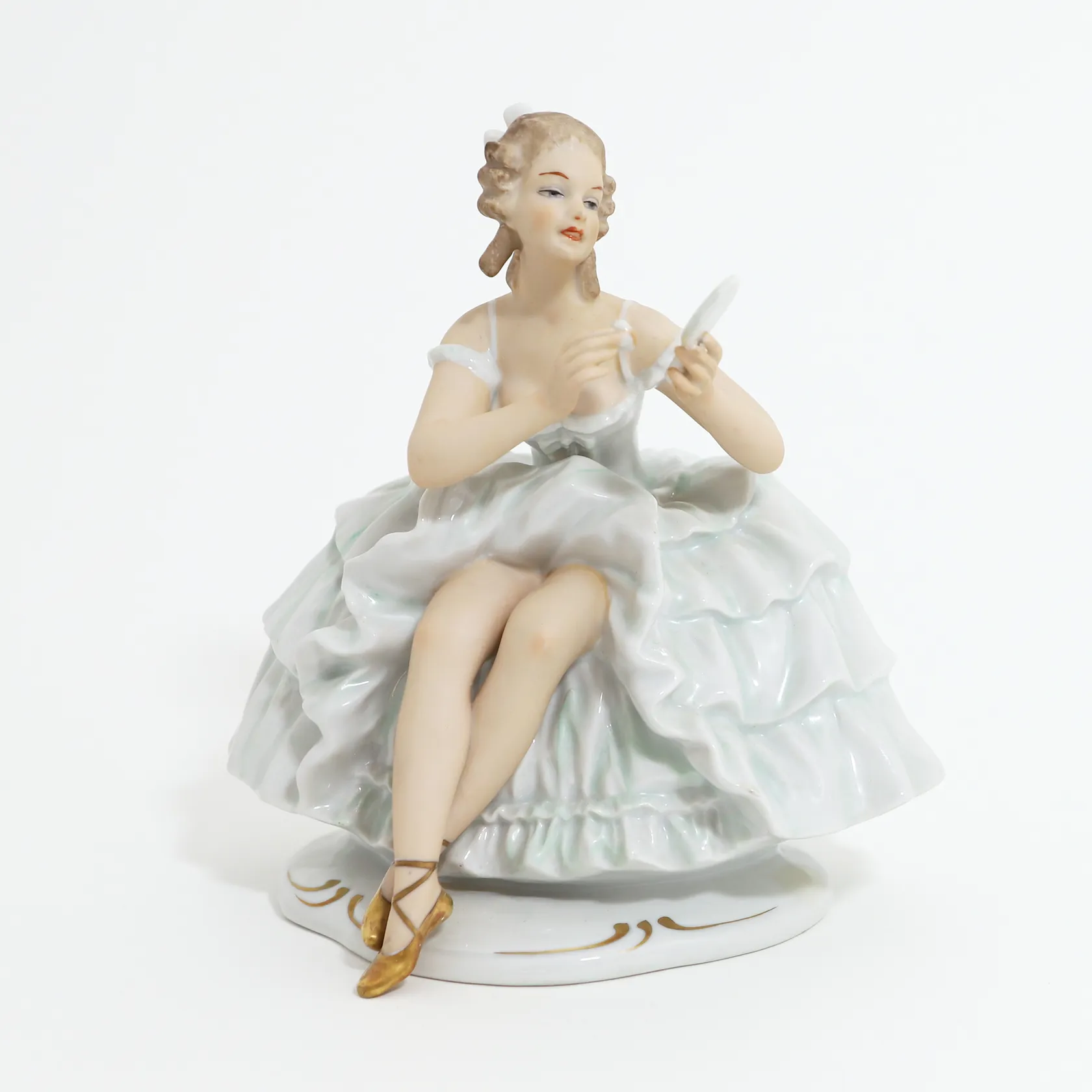 Figurin Wallendorf, sittandes ballerina, modellnummer: 1396, porslin, höjd: 18cm bredd: 16cm.
