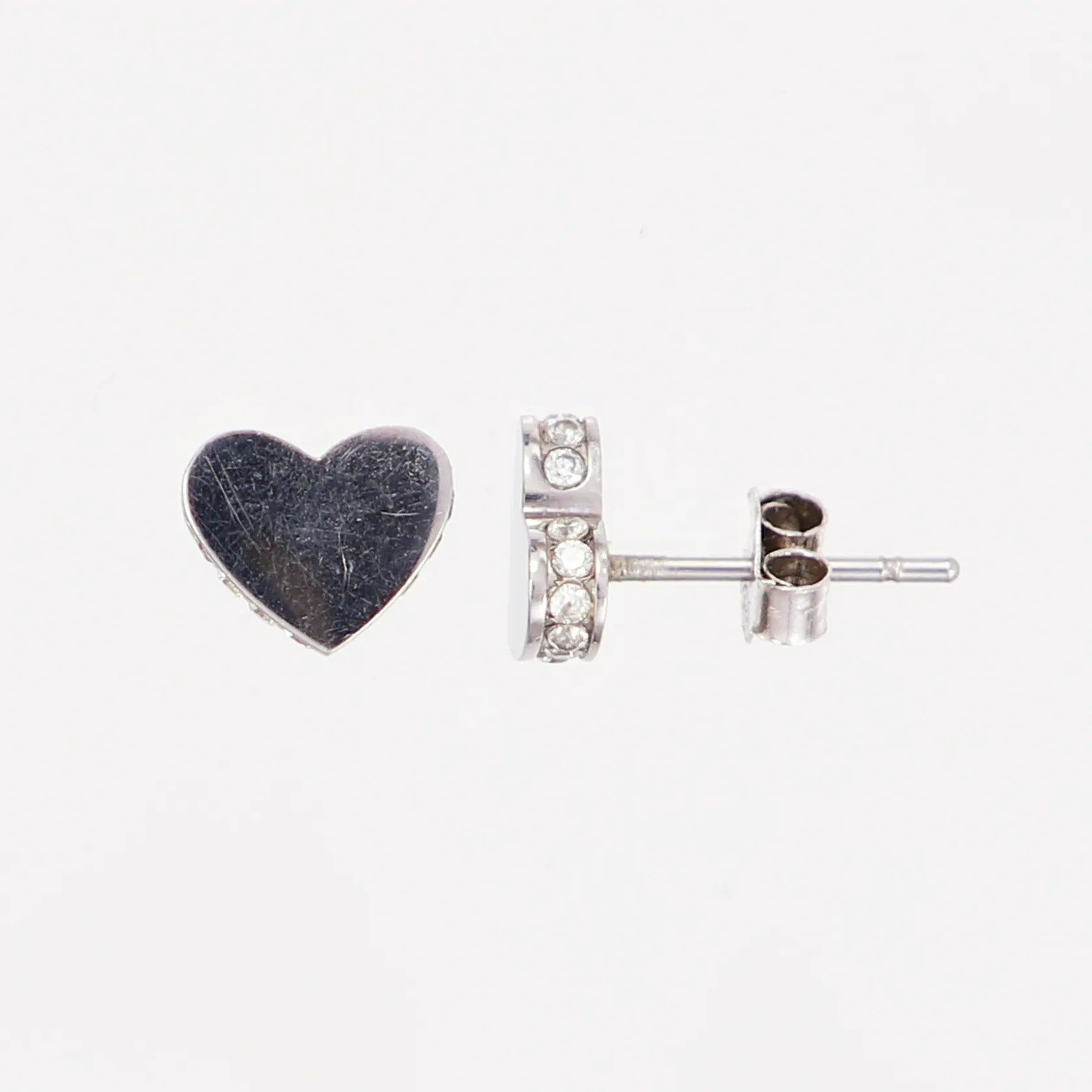 Ett par örhängen EDBLAD, hjärtan med vita stenar, 7x8mm, en stopp i silver, vitmetall.