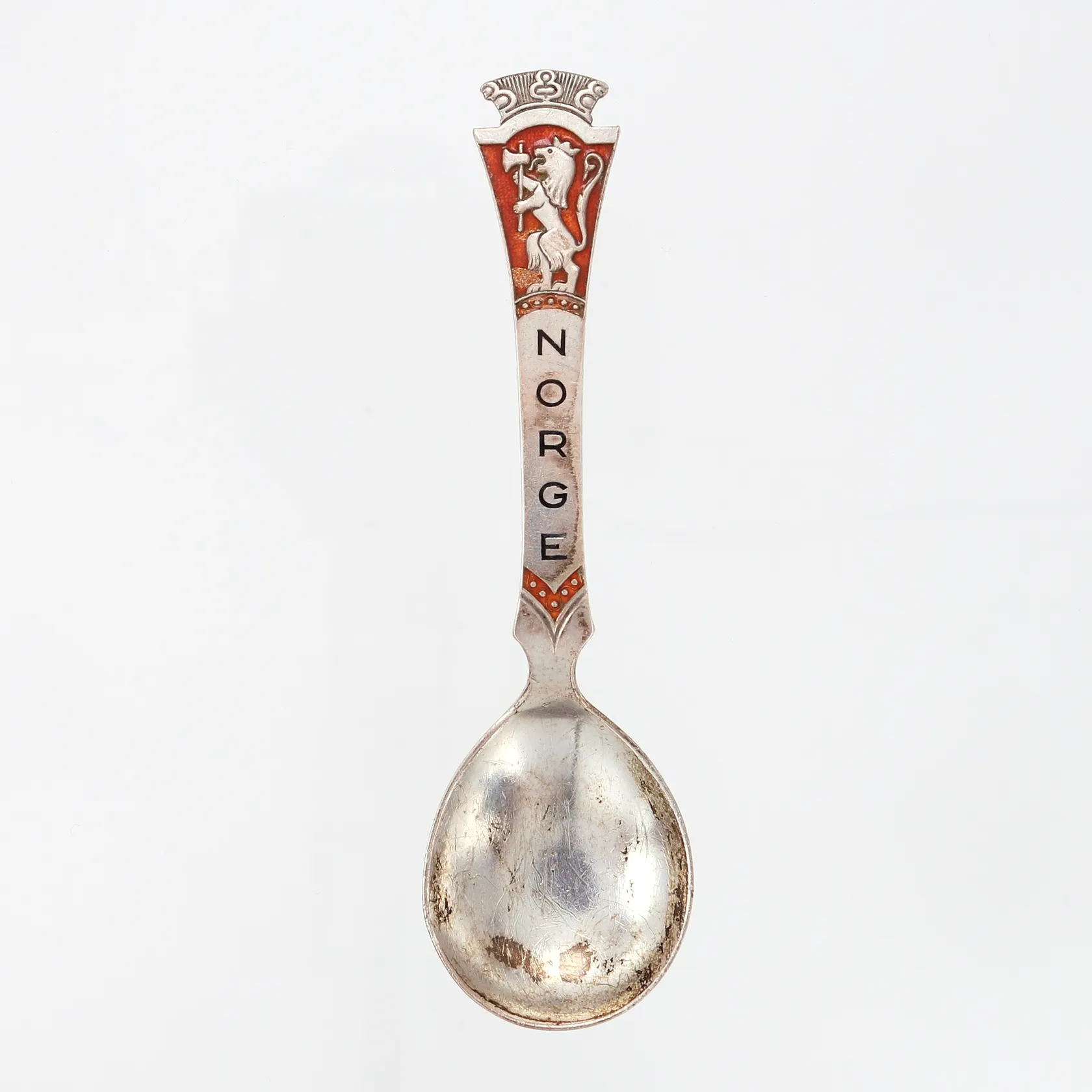 Sked, NORGE med emalj, slitage, 13cm, silver 925/1000, vikt: 26,5 gram Vikt: 26,5 g.