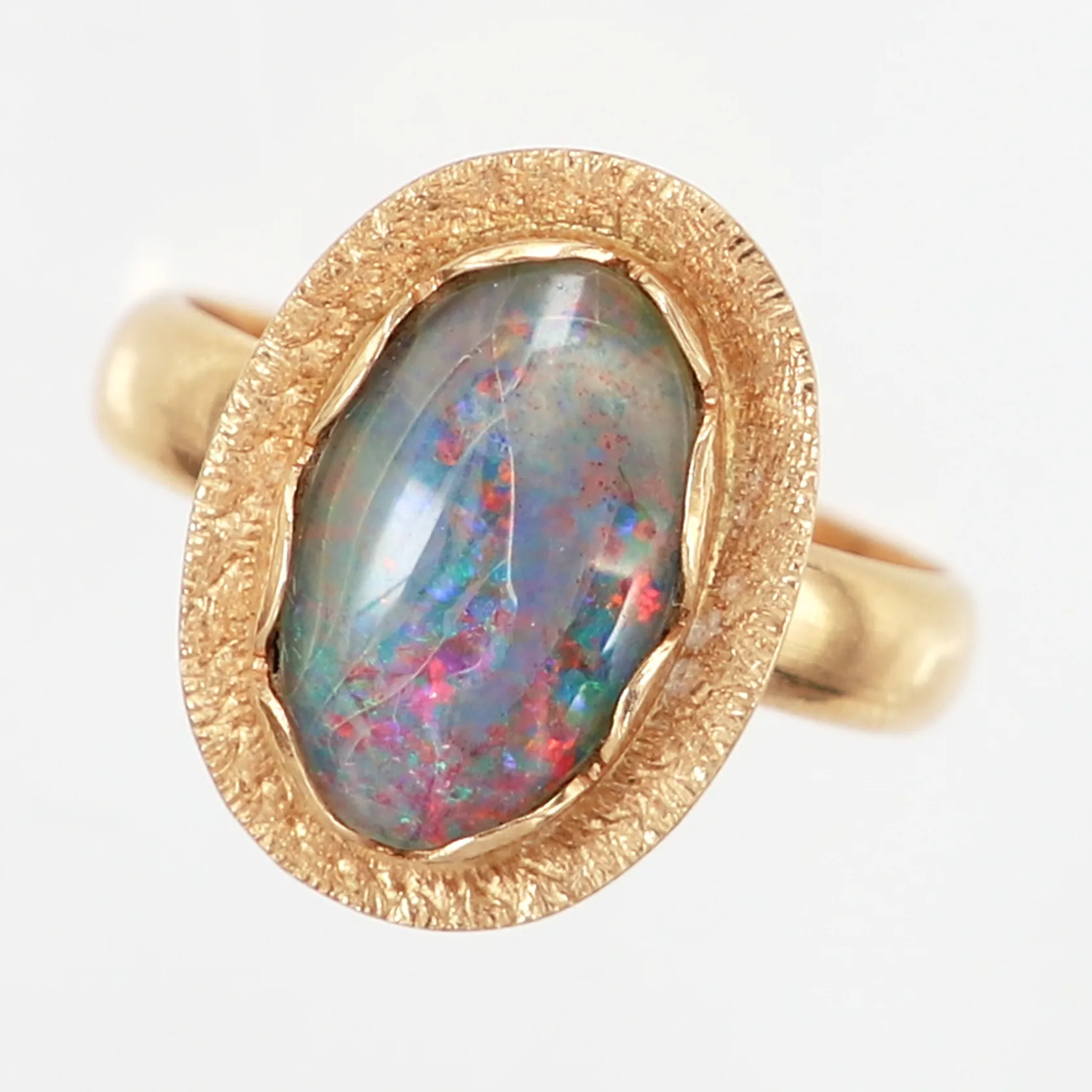 Ring med opaltriplett, stl 17¾, bredd: 4-17mm, Ernst Olof Engdahl, Malmö, 18K Vikt: 5,4 g.