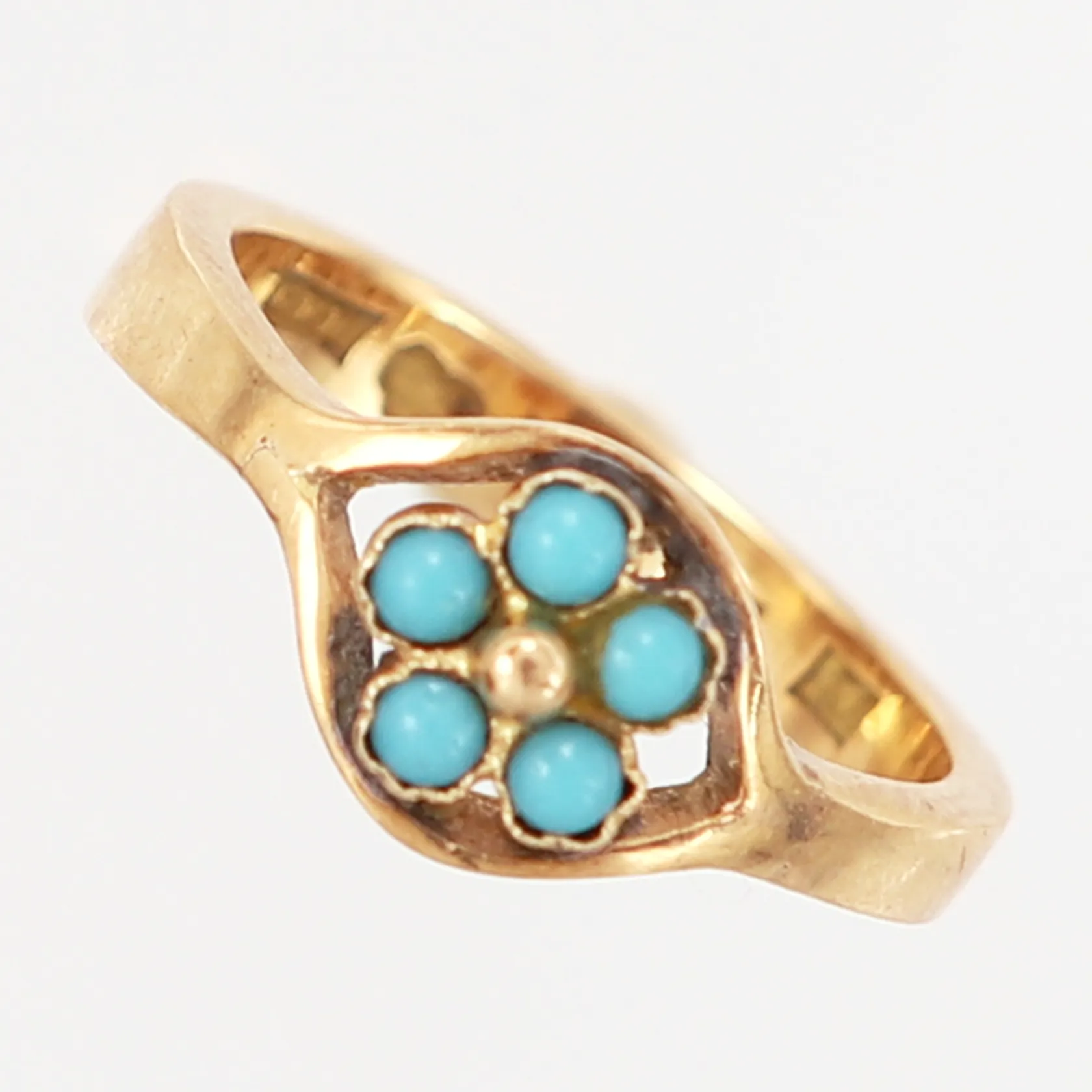 Ring med turkoser, stl 16, bredd: 3-8mm, 18K Vikt: 3,6 g.