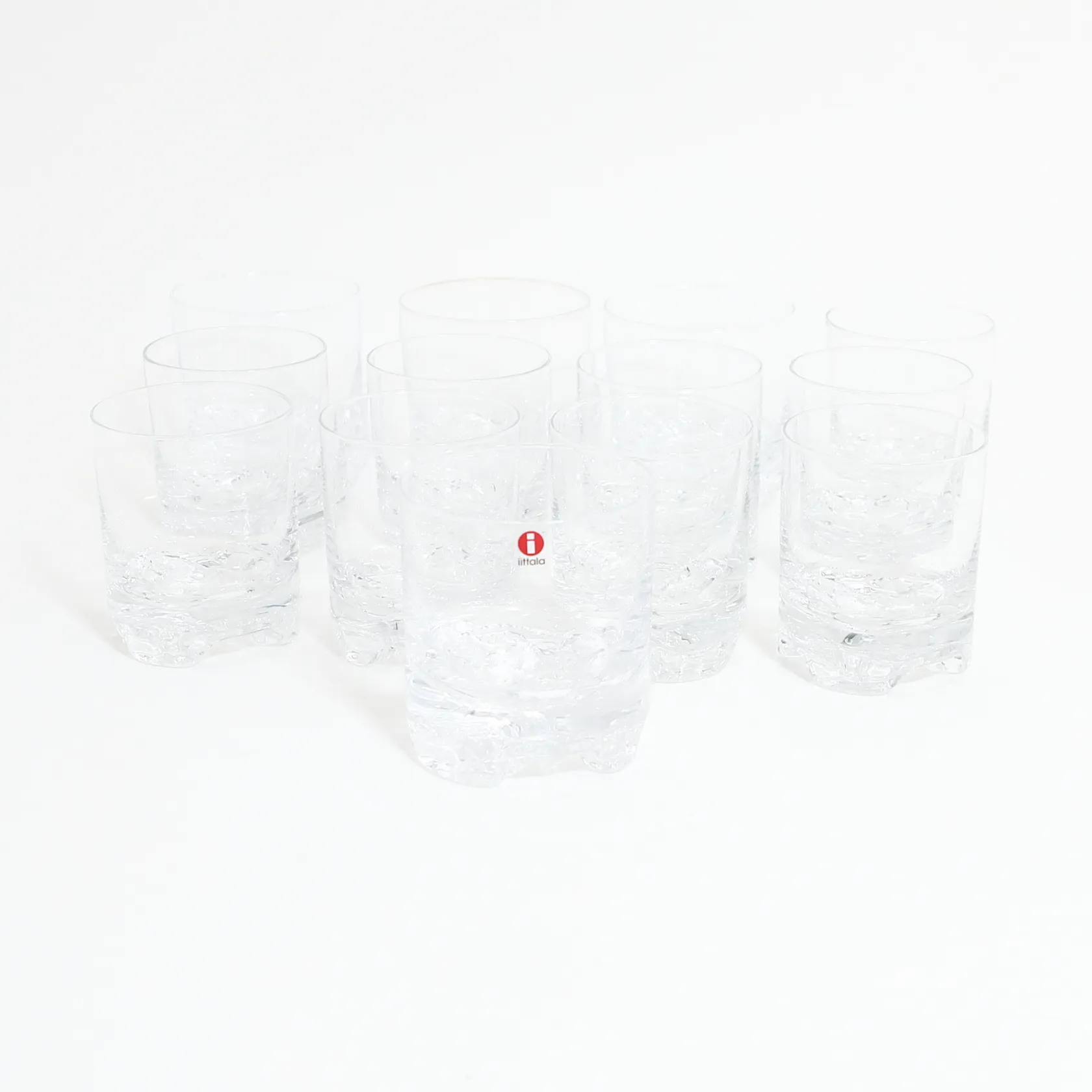Nio selterglas Ø70mm, Höjd: 85mm, fyra whiskeyglas Ø80mm, höjd:90mm Iitalla Skickas med postpaket.