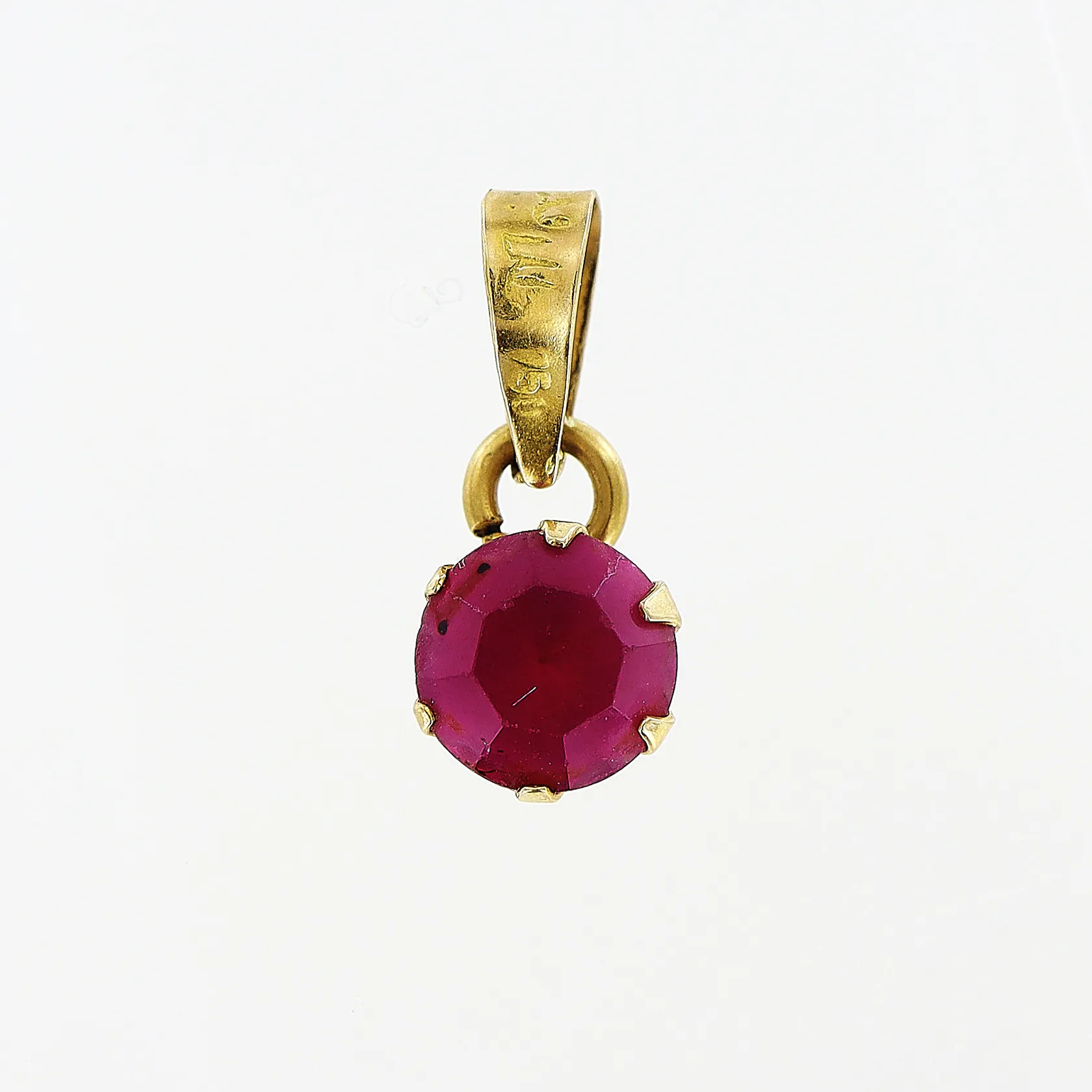 Hänge, rosa sten, 15x6mm, 18K. Vikt: 0,5 g.