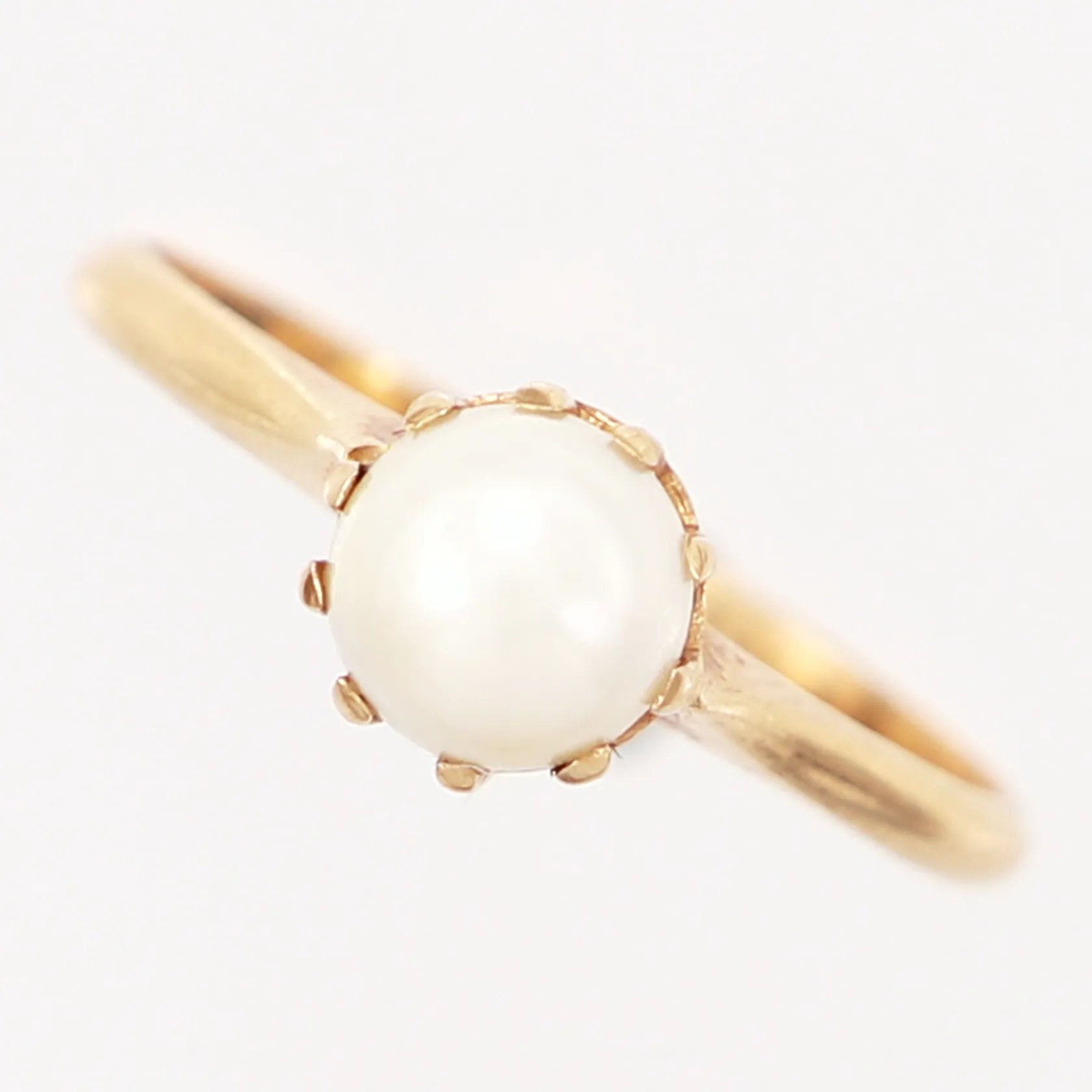 Ring med pärla, stl 17¼, bredd 2-6mm 18K Vikt: 2,1 g.