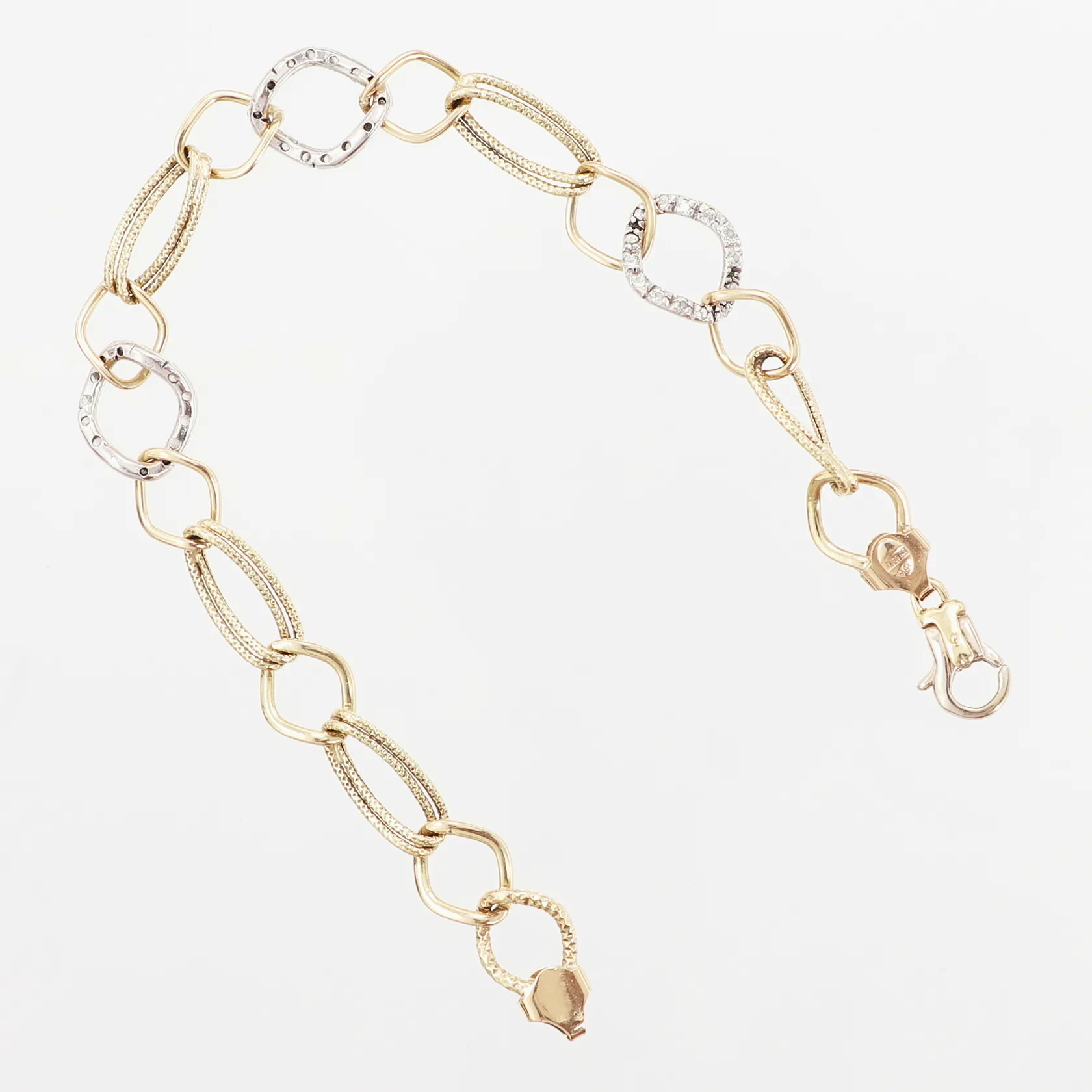 Armband, gulguld/vitguld med stenar, 20,5cm, bredd:8-12mm, 14K Vikt: 7,1 g.