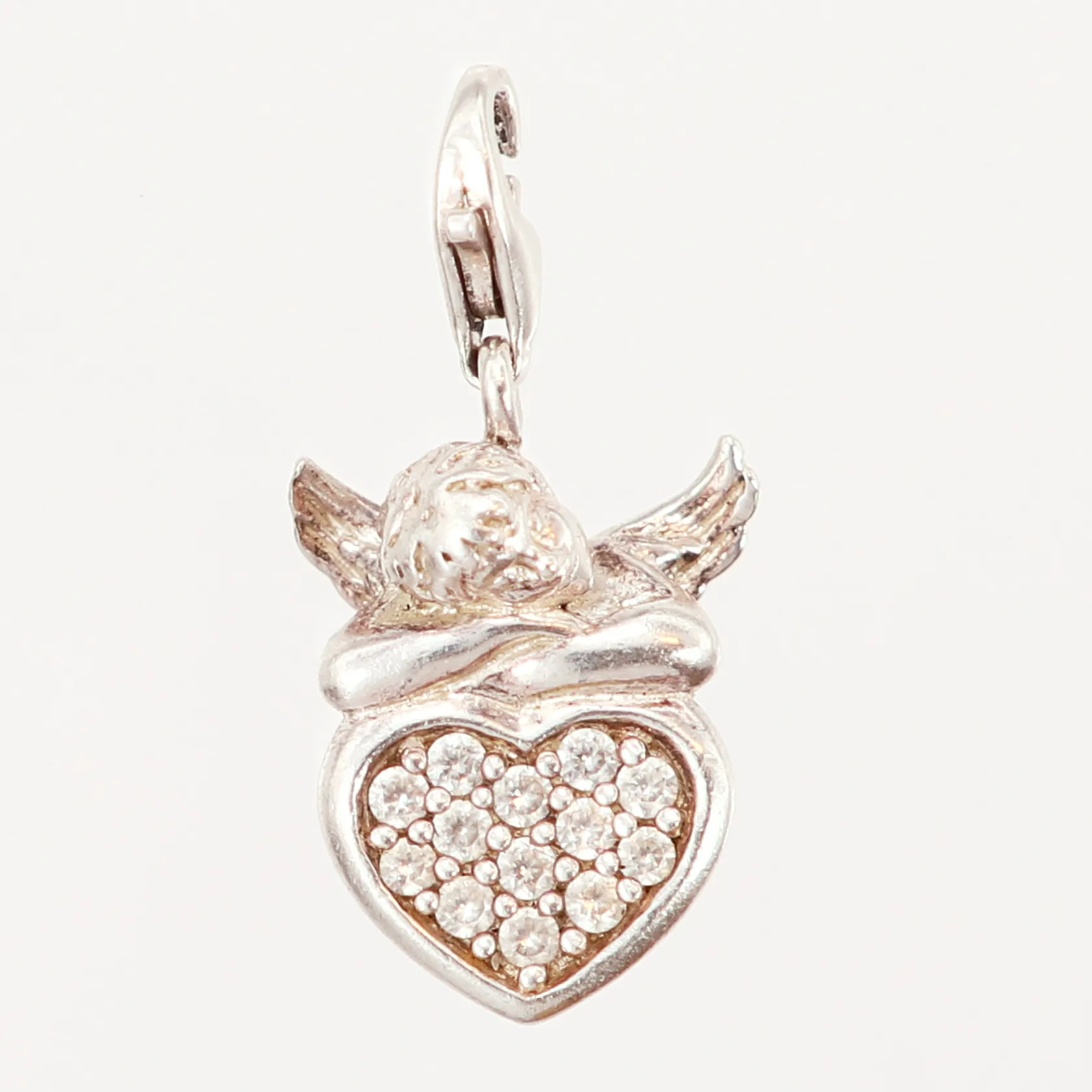 Berlock med vita stenar, Thomas Sabo, ängel med hjärta, 15x30mm, skevheter vid lås, silver 925/1000 Vikt: 4,3 g.