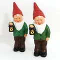 Ett par trädgårdstomtar i målad terrakotta, troligen Tyskland, höjd: 37cm. etikettmärkta, okänt fabrikat. Skickas med postpaket.
