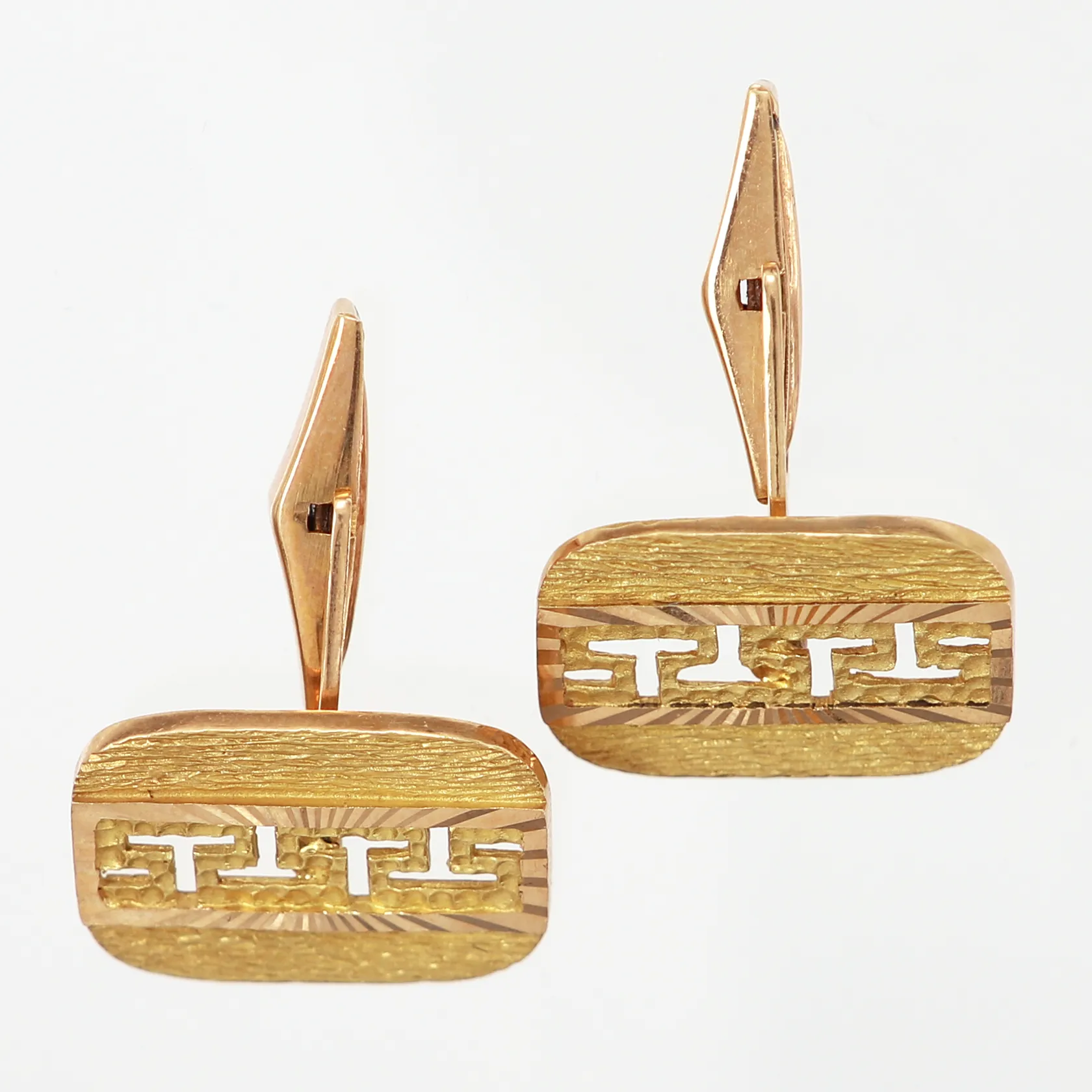 Ett par manschettknappar med meanderbård, 21x16mm, 18K Vikt: 10,3 g.